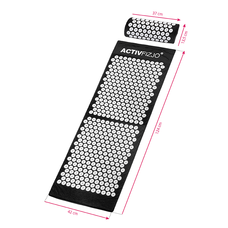 De actieve basisgezondheidsmat leidt tot ontspanning van het lichaam, verlicht pijn en vermoeidheid. De stekels van de mat, die op geselecteerde delen van het lichaam drukken, zullen de bloedtoevoer naar de spieren verbeteren, wat leidt tot hun snellere regeneratie en de afgifte van endorfines. Endorfines zullen je humeur verbeteren en een positief effect hebben op de werking van neuropeptiden – moleculen waarvan de taak is om pijn te verlichten. De mat is gemaakt van hoogwaardige materialen. De dekking van de mat is gemaakt van hoogwaardig, puur katoen, vulschuim gemaakt van polyurethaan en rozetten gemaakt van milieuvriendelijk materiaal. De hoes voor de mat heeft een comfortabele handgreep en een ventilatietape die zorgt voor ventilatie van het gehele inzetstuk en hoge hygiëne. Actieve basismat aanbevolen voor de volgende kwalen: – spanningsspier, – slechte circulatie, – slapeloosheid, – stress, depressie – pijn in de nek, rug en wervelkolom – ischias – schouderpijnen – hoofdpijn hoe we gebruiken: de beste resultaten zijn bij het gebruik de mat elke dag. Dagelijkse gebruikstijd hangt af van het niveau van vooruitgang van de gebruiker volgens de volgende richtlijnen: – Beginner 5 – 10 minuten – Gemiddeld 10 – 20 minuten – Geavanceerd 20 – 40 minuten Aanvullen : Zwart – Het kussen is niet genaaid aan de mat – Rosette kleur: wit – Rosette Materiaal: ABS
