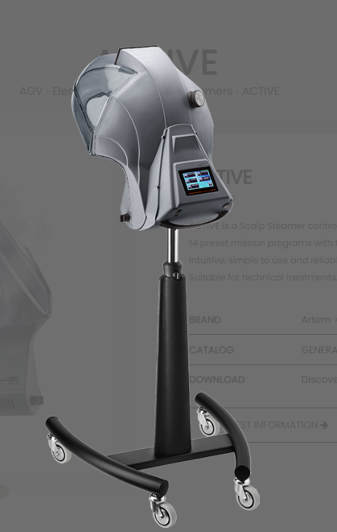 ACTIVE is een hoofdhuidstomer met LCD-TFT-touchscreen, 14 vooraf ingestelde programma’s met ozonkeuze.