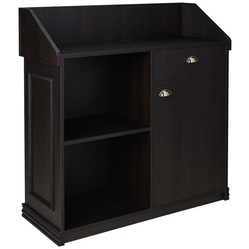 Balie is uitgevoerd in de kleur wengé en Zwart
