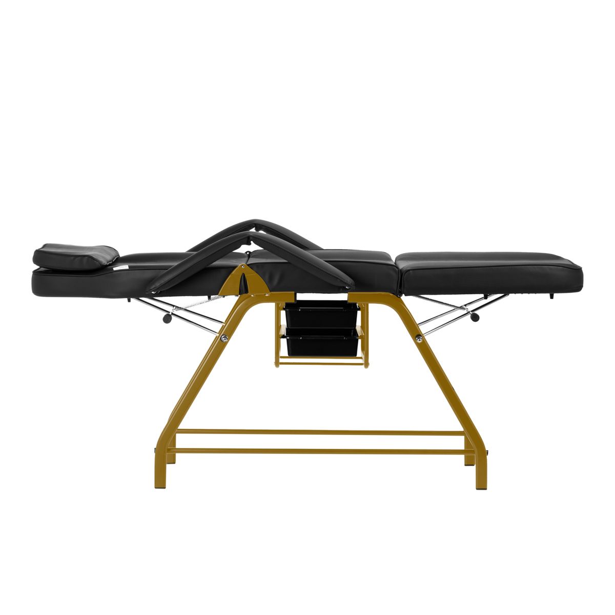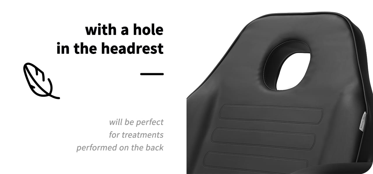 De armleuningen bieden de gebruiker voldoende ondersteuning en comfort tijdens behandelingen. Indien nodig kunnen ze eenvoudig worden verwijderd, zodat de persoon die de diensten uitvoert gemakkelijker toegang heeft tot de ruimtes waar hij op dat moment aan het werk is. Deze in tweeën gedeelde elementen zijn verplaatsbaar, waardoor ze goed passen bij het veranderen van de rugleuningpositie.