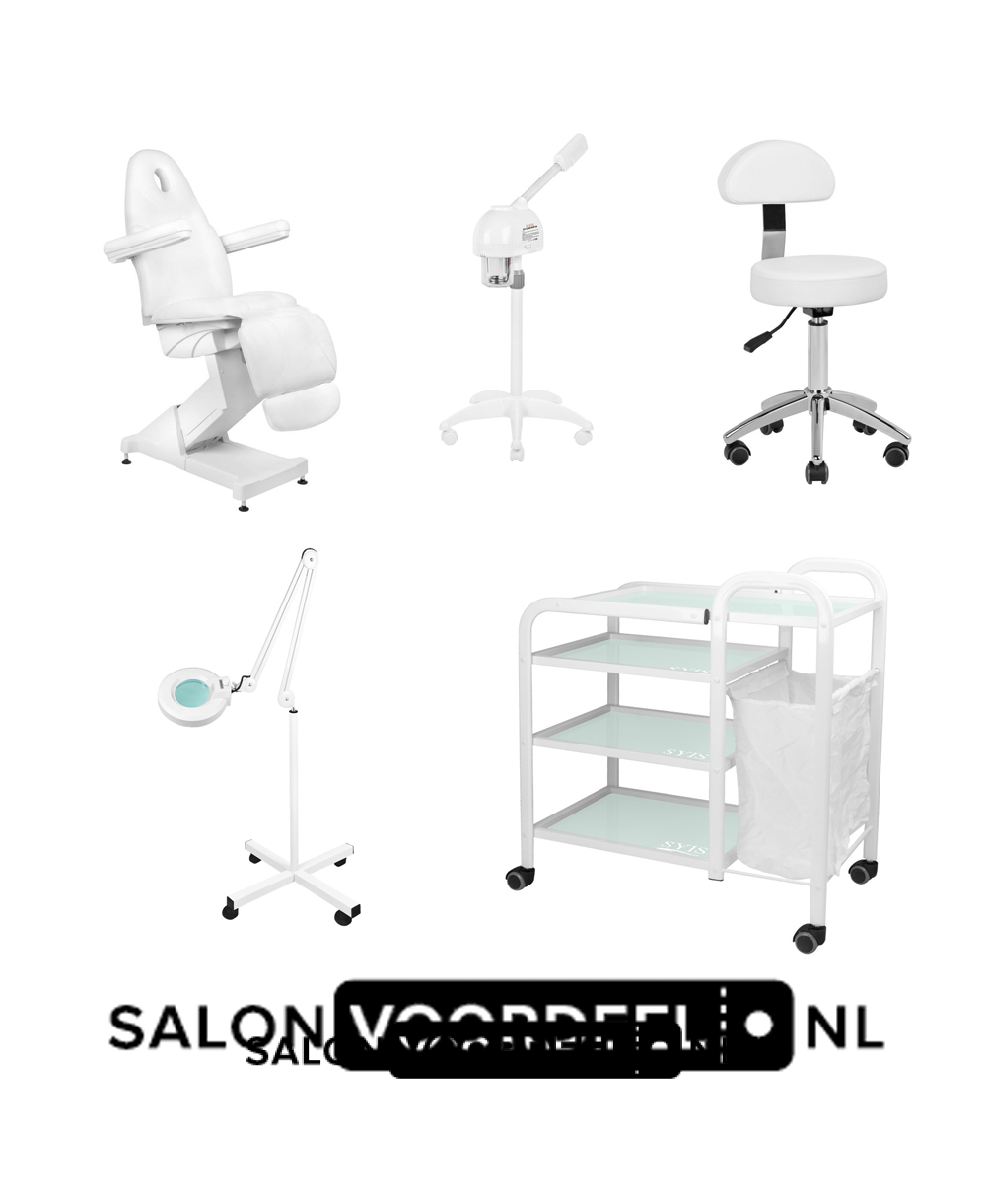 Behandelstoel, werkwagen, tabouret, louplamp én vapozone,