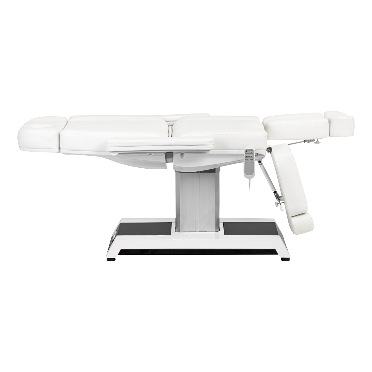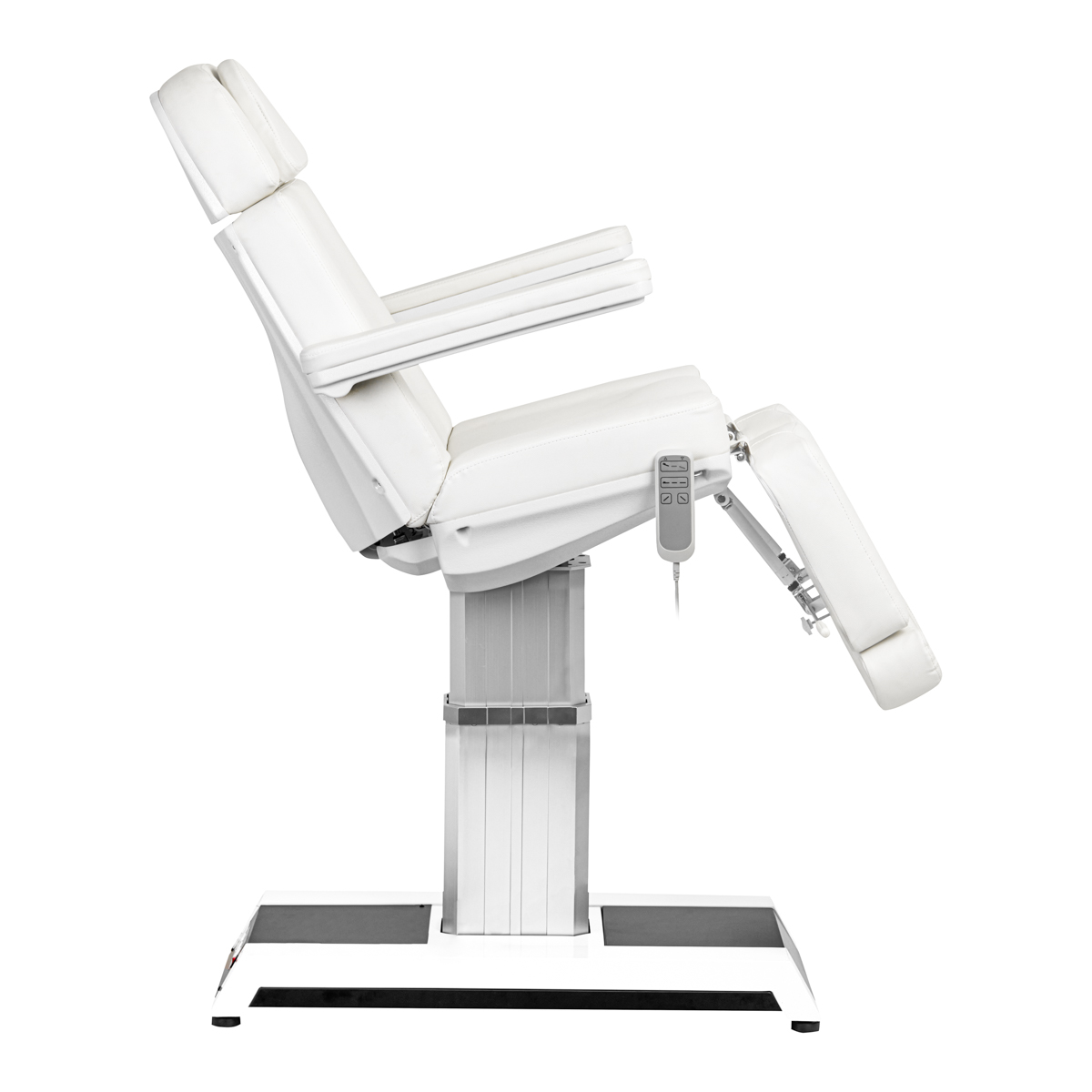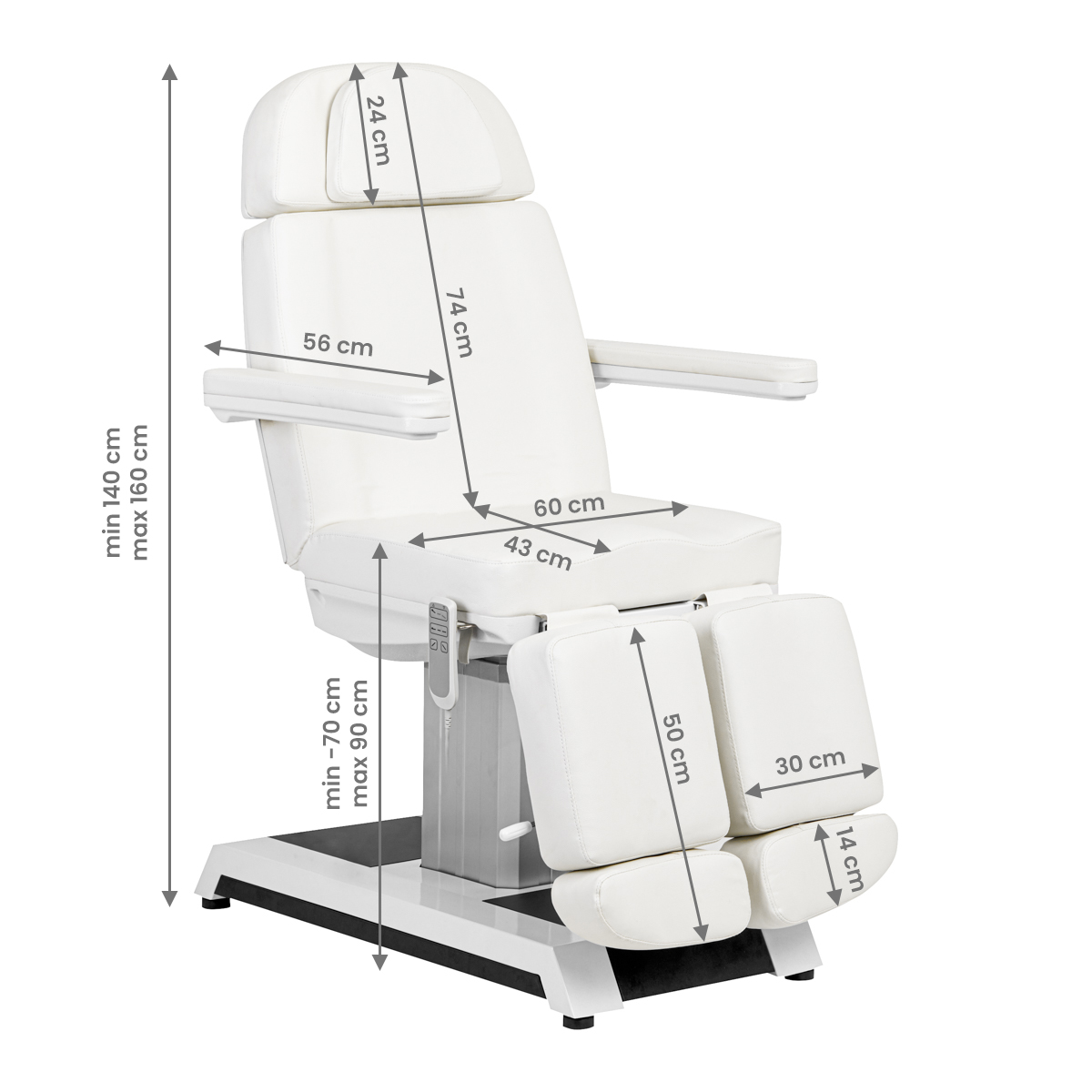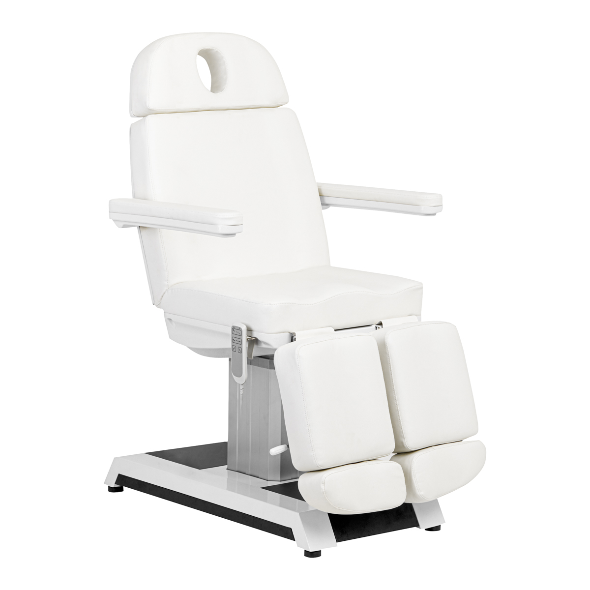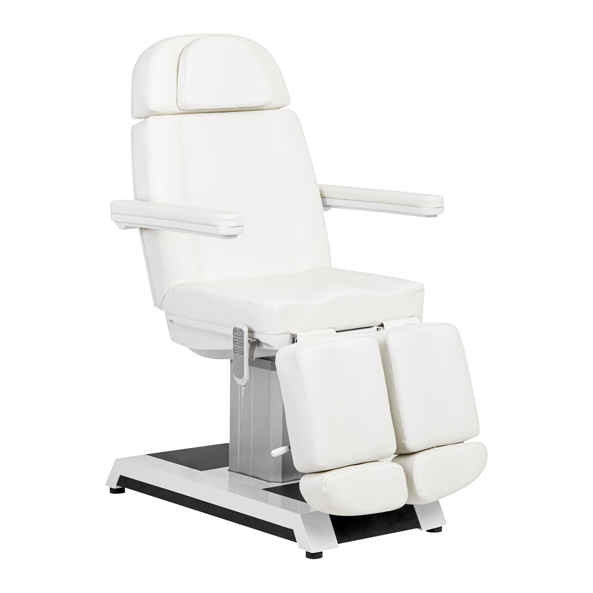 Professionele Elektische Behanderstoel-expert Podo is perfect voor schoonheidssalons en spa-salons. Dankzij onafhankelijke motoren kunt u de Stoel in 3 vliegtuigen aanpassen door middel van een afstandsbediening, waardoor het mogelijk is om behandelingen uit te voeren voor het gezicht, lichaam en voeten. Met behulp van de afstandsbediening kunnen we de hoogte van de Stoel, de helling van de rugleuning aanpassen en de stoel op de houder van de wieg instellen. De voetsteunen zijn onafhankelijk verstelbare Met Gas Springs. Een extra, interessante functie is de veelkleurige verlichting van de Behandelstoel Met Armleuning Base.