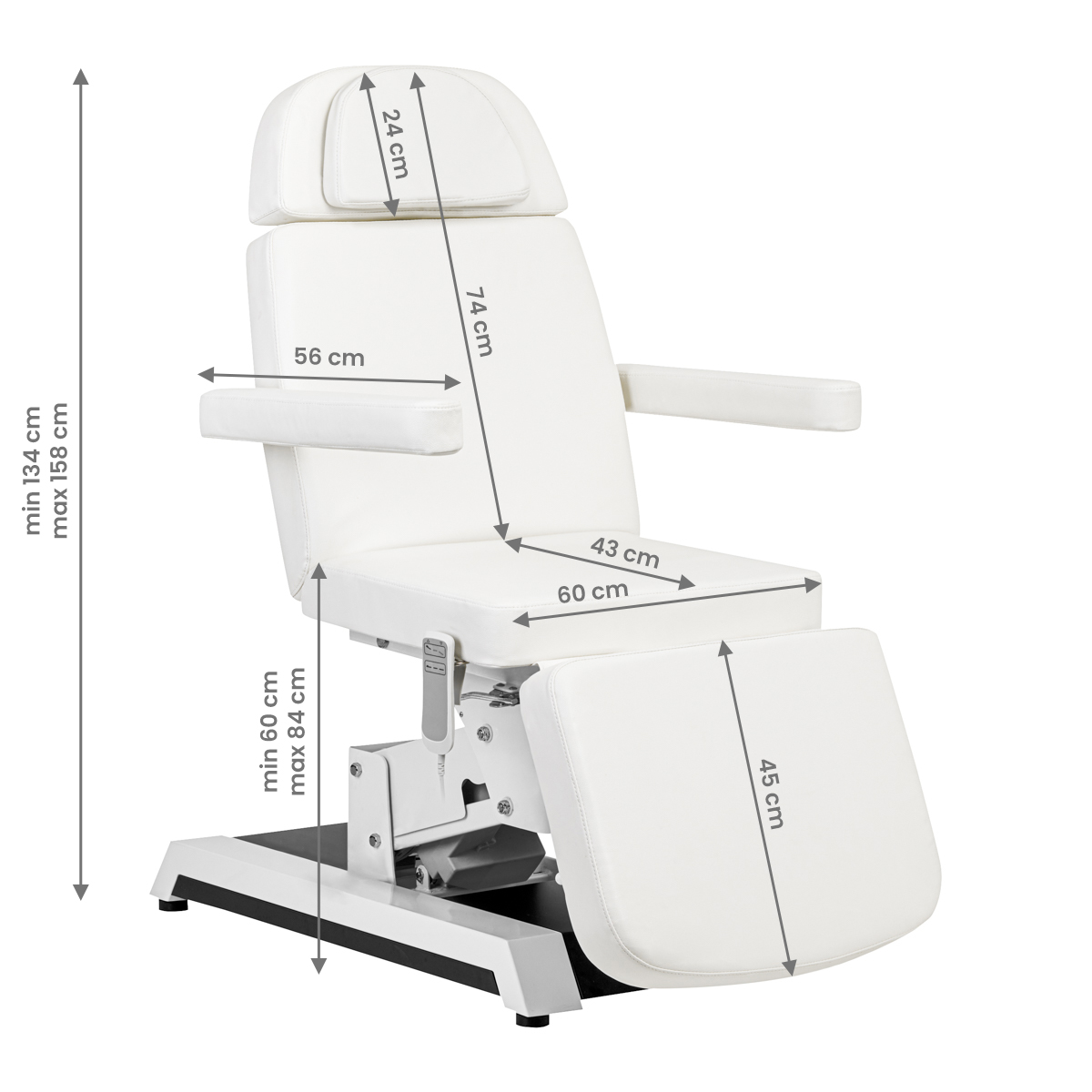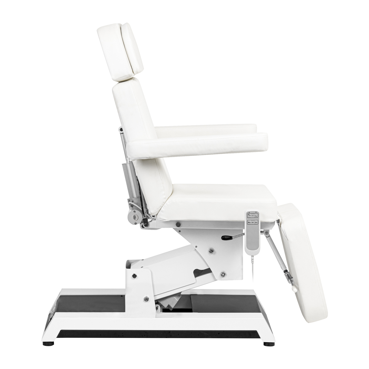 De professionele Elektrische behandelstoel EXPERT is ideaal voor schoonheidssalons en SPA-salons. Dankzij onafhankelijke motoren kunt u de stoel met een afstandsbediening in 2 vlakken verstellen, waardoor u behandelingen voor gezicht en lichaam kunt uitvoeren. Met behulp van de afstandsbediening kunnen we de hoogte van de stoel en de helling van de rugleuning aanpassen. De voetensteun is onafhankelijk verstelbaar met gasveren. Een extra, interessante functie is de veelkleurige verlichting van de fauteuilbasis.