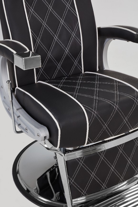 Het heeft een aangenaam aanvoelende textuur en unieke functionele eigenschappen: bestand tegen water, bestand tegen verzorgingsproducten en is gemakkelijk af te wassen met water en wasmiddel. De solide staalconstructie rust op een zeer stabiele basis met een rubberen frame. Dankzij dit glijdt de kappersstoel niet weg en maakt hij geen krassen op de vloer.