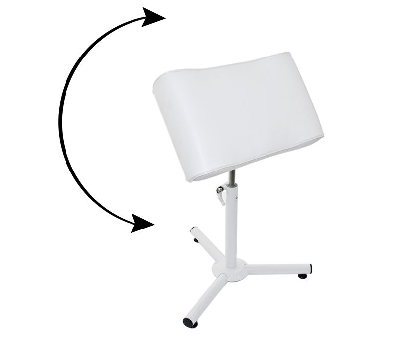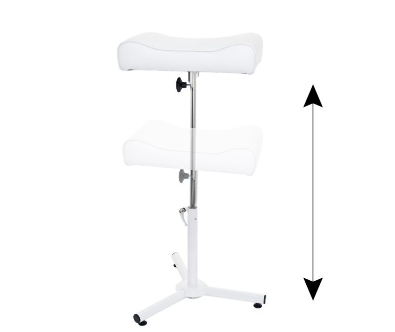 De voetsteun is verticaal verstelbaar en heeft een instelbare hellingshoek van het kussen, waardoor het nuttig is voor alle soorten behandelingen, niet alleen pedicures. Het heeft ook een grote geprofileerde bekleding die de benen goed vasthoudt. Technische gegevens: Basisiameter 45 cm voetsteunafmetingen 42x26cm Hoogte min 61 cm Max hoogte 81 cm – Gewicht 4,3 kg – Verstelbare hellingshoek –