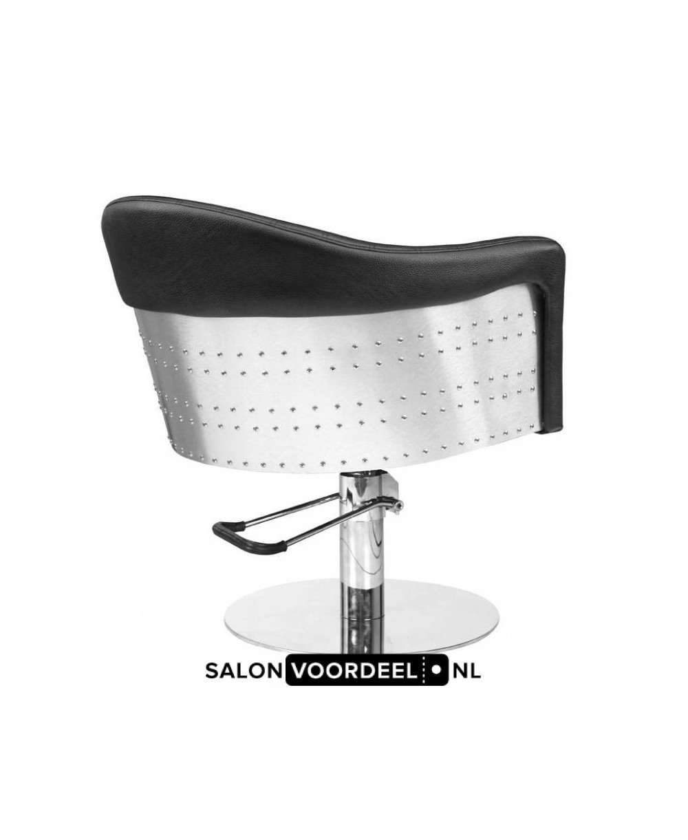 Kappersstoel St Tropez Zwart De Comair Kappersstoel St. Tropez is een stoel met een modern retrodesign. De stoel is gemaakt van hoogwaardig kunstleer en zorgt door zijn zeer goede bekleding voor een hoog zitcomfort. De rugleuning van de Comair Kappersstoel St. Tropez is met aluminium bekleed. De ronde chromen voet met hydraulische pomp maakt een eenvoudige en optimale instelling van de zithoogte mogelijk.