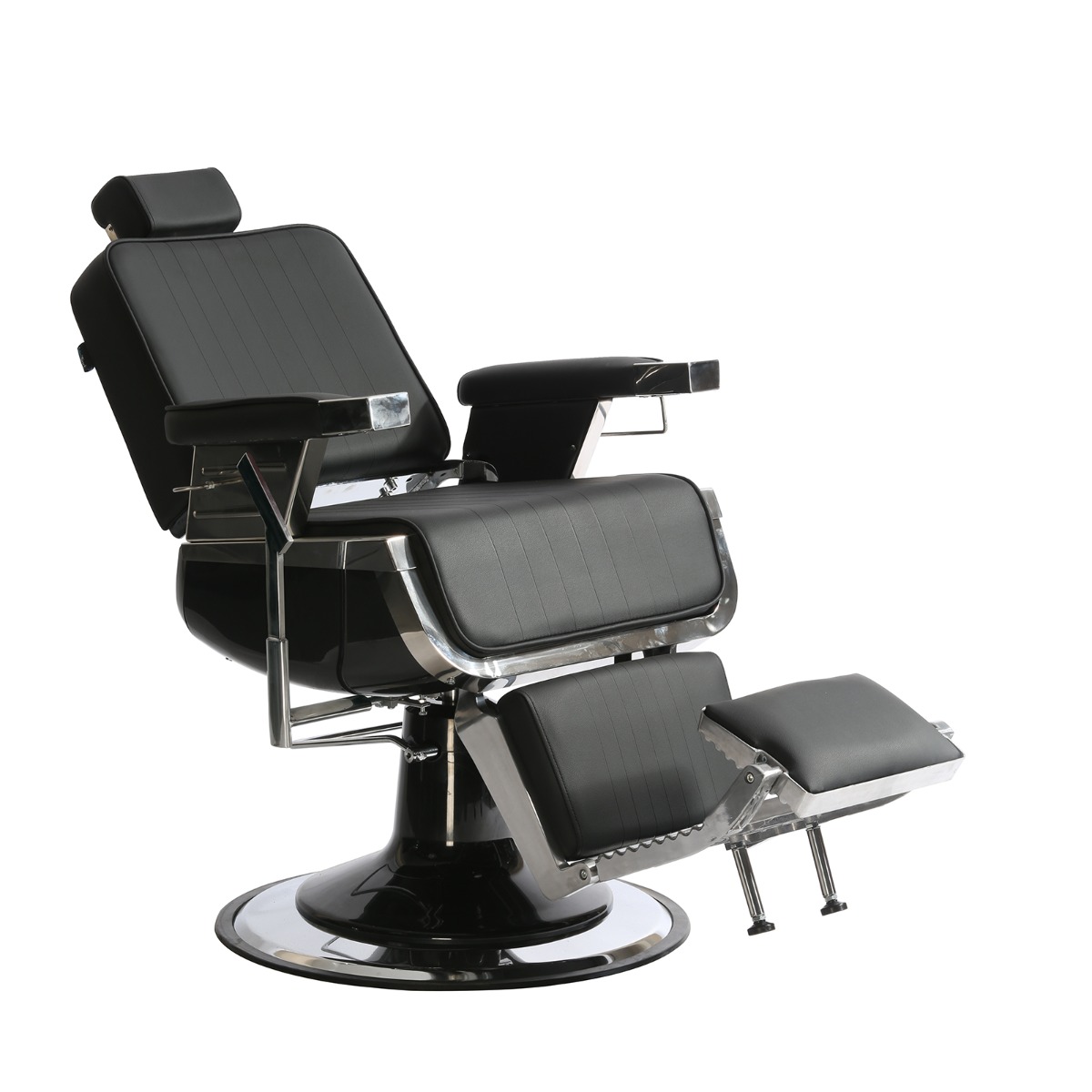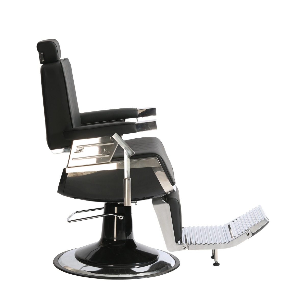 Indien nodig kunt u de hoogte aanpassen met behulp van een hydraulische pomp. Ook zijn de rugleuning, hoofdsteun en voetsteun verstelbaar, waardoor het voor de klant makkelijker wordt om een ergonomische houding aan te nemen. Doordat de kappersstoel draaibaar is, heeft de machinist er goed toegang toe.