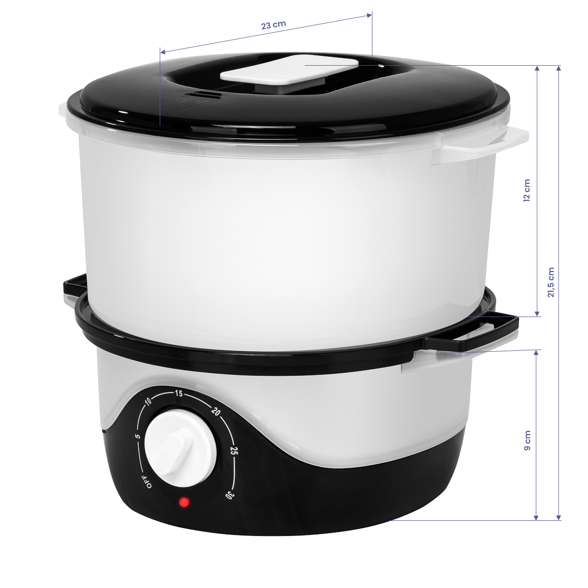 Het model onderscheidt zich door zijn snelle opwarming, waarbij de maximale temperatuur in korte tijd wordt bereikt. Dit maakt het een ideale keuze voor professionals, zodat zij efficiënt kunnen werken. Met een timer kunt u de verwarmingstijd instellen op 5, 10, 15, 20, 25 of 30 minuten. Na afloop van de tijd schakelt het apparaat automatisch uit, voor volledige veiligheid. Water kan eenvoudig worden toegevoegd via de bovenkant van de container en via de inlaten aan de zijkant. Een led-indicatielampje en markeringen voor het minimale en maximale vulniveau dragen bij aan het gebruiksgemak.