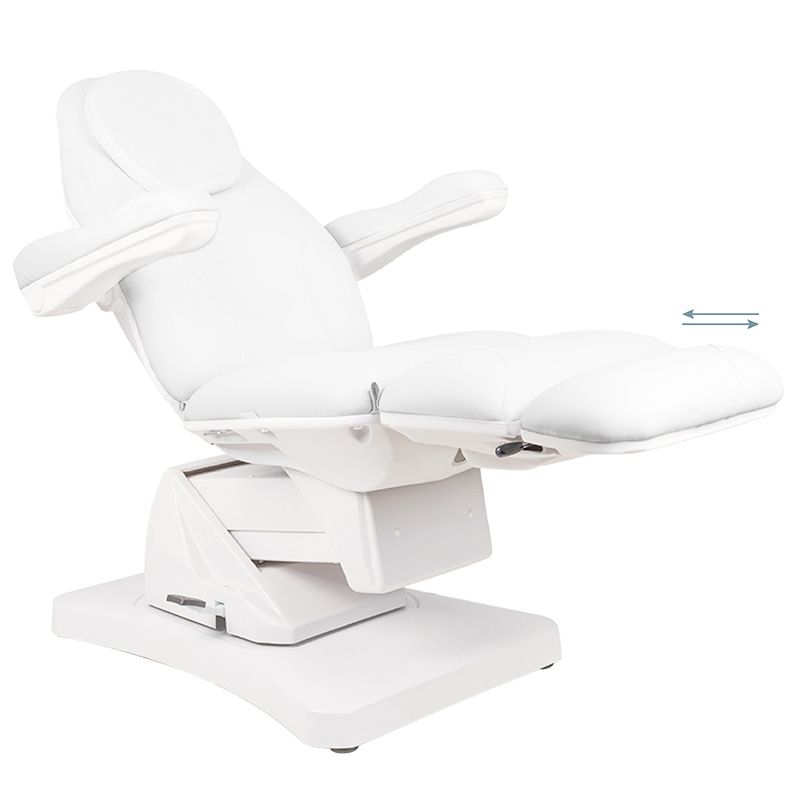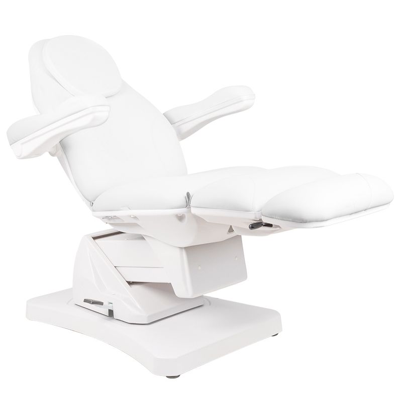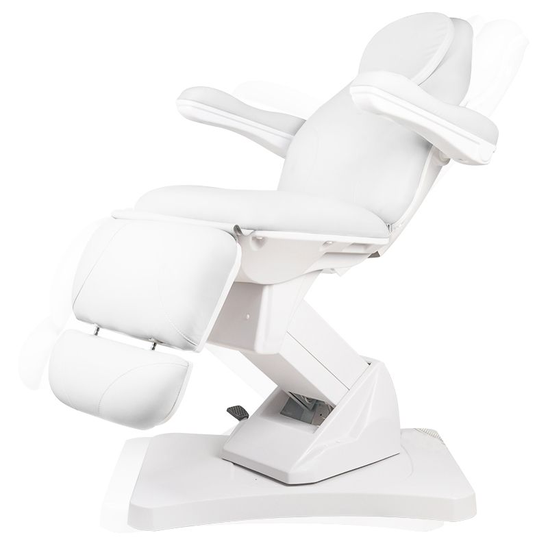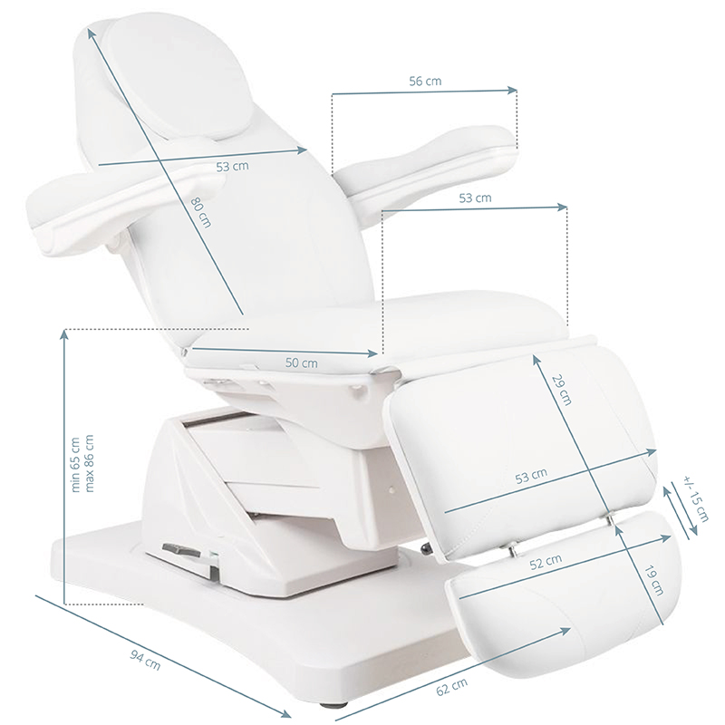 Elektrische Behandelstoel Basic 169 is een antwoord op de voortdurend groeiende verwachtingen en eisen van klanten. Deze stoel is een moderne en functionele cosmetische stoel. De zitting heeft een hydraulisch verstelbare voetensteun. De stoel wordt bediend met een handmatige afstandsbediening en heeft een soepele verstelling van heffen en dalen, verstelling van de rugleuninghoek en de zogenaamde wieg. Een extra, zeer handige functie is het 90 graden naar rechts en 90 graden naar links draaien van de stoel. deze functie wordt geactiveerd door op de voethendel te drukken. de behandelstoel is gemaakt van hoogwaardig eco-leer, dat gemakkelijk schoon te maken is. technische specificaties: