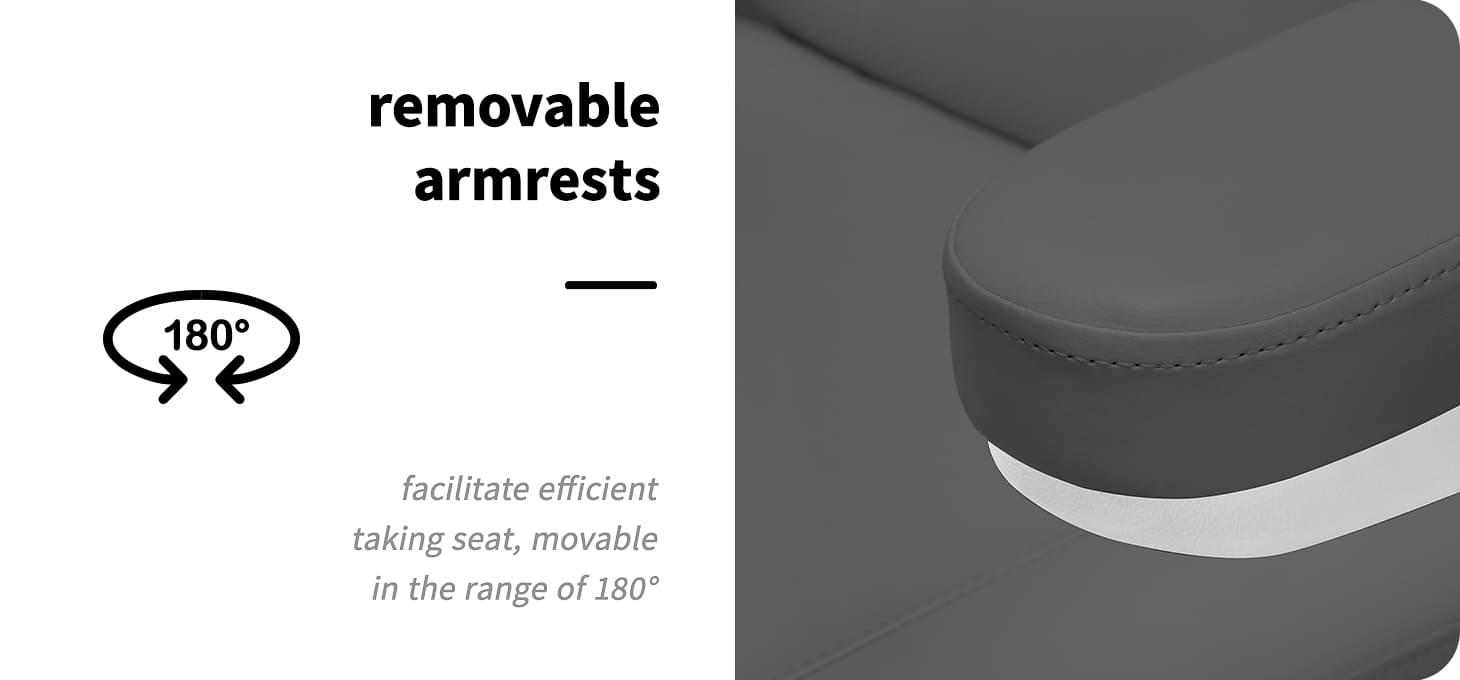 De uitschuifbare hoofdsteun helpt de uitrusting aan te passen aan de behoeften van gebruikers van verschillende lengtes, waardoor stabiele hoofdsteun tijdens behandelingen. Het is ook mogelijk om de verlenging van de voetsteun aan te passen, wat vooral handig is tijdens behandelingen bij langere mensen, waardoor ze betere ondersteuning krijgen. De armleuningen zijn binnen 180º beweegbaar, waardoor het gemakkelijker wordt om plaats te nemen in de stoel en een comfortabele toegang biedt voor de persoon die de procedure uitvoert. Ze kunnen indien nodig gemakkelijk en snel worden verwijderd.