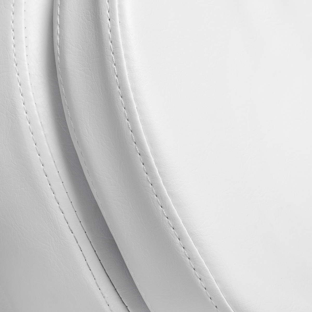 De stoel is gevuld met voorgevormd schuim en bedekt met aangenaam aanvoelend synthetisch leer in wittinten. Door het gebruikte materiaal is de apparatuur gemakkelijk schoon te maken en bestand tegen vocht en geselecteerde ontsmettingsmiddelen. Een stevige basis van duurzaam wit materiaal zorgt voor stabiliteit tijdens behandelingen. Goed geprofileerde zomen geven de stoel een stijlvolle uitstraling en maken de zitting ergonomisch. Dankzij het minimalistische, eenvoudige ontwerp en klassieke kleuren past hij in elk interieur.