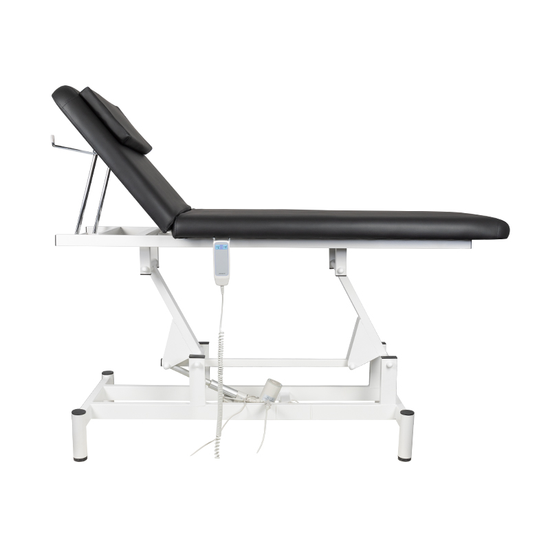 de bank is speciaal bedoeld voor fysiotherapiebehandelingen en schoonheidssalons. voorzien van 1 motor, waardoor de hoogte elektrisch geregeld wordt, de helling van de rugleuning handmatig versteld wordt. de hoofdsteun is een kussen dat de gezichtsopening bedekt. het heeft een uitzonderlijk stabiele structuur en een comfortabel werkblad.