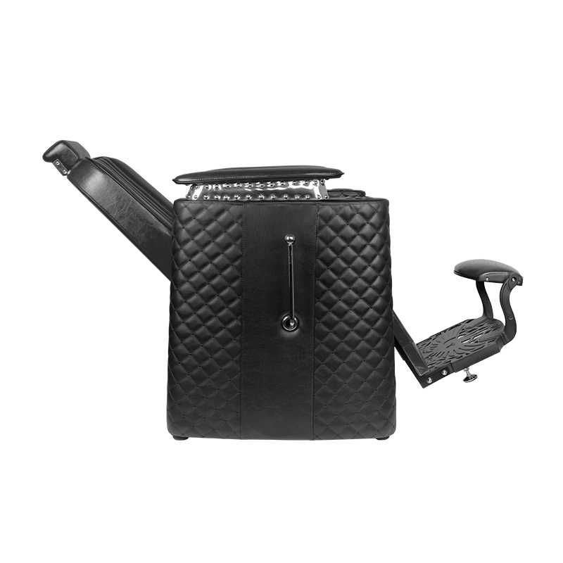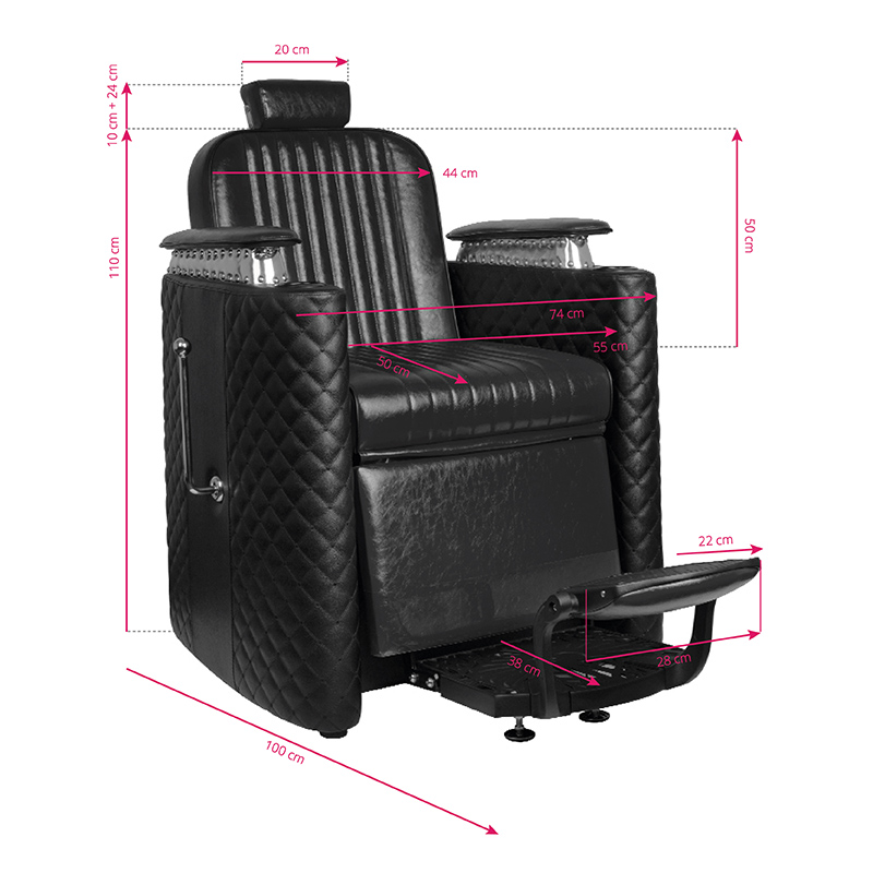Als jouw salon baardverzorging biedt, kunnen wij het perfecte meubel voor je barbersalon aanbieden. De Barberstoel Bernardo. De fauteuil biedt maximaal comfort voor zowel de persoon die de behandeling uitvoert als de saloncliënt. In de fauteuil kunnen we gemakkelijk de helling van de rugleuning, de voetsteun en de lengte van de bedsteun verstellen. Zelfs de kleinste details worden met grote precisie gemaakt. Mooie bekleding met originele textuur. Hoogwaardig eco-leer, slijtvast en onderhoudsvriendelijk.
