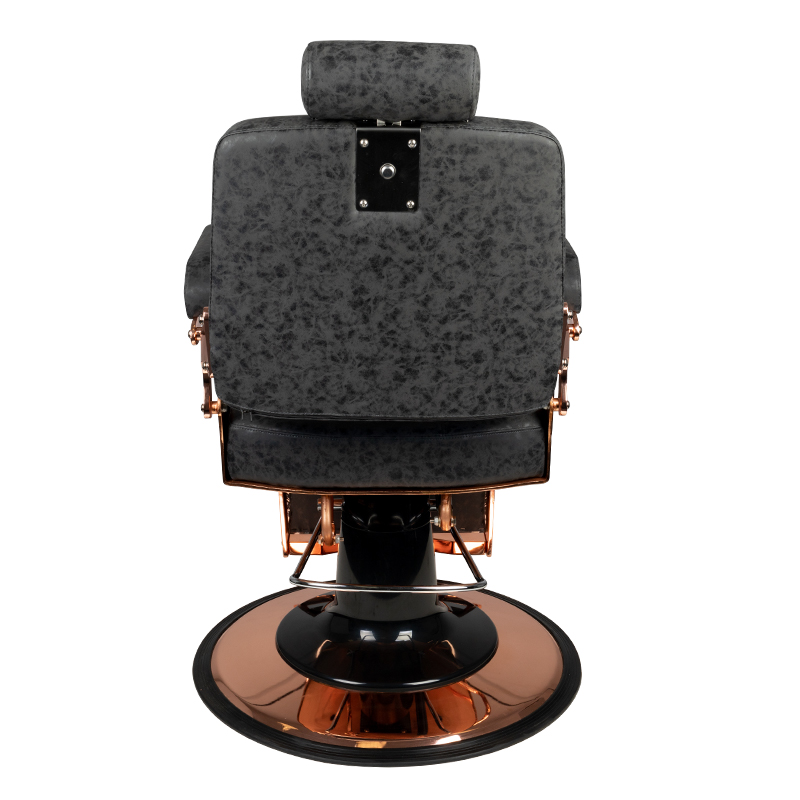 Gabbiano Barberstoel Boss HD Copper Oud Leer Zwart Als jouw barbersalon baardverzorging biedt, kunnen wij de perfecte barberstoel voor jouw barbersalon aanbieden. Een comfortabele barberstoel met een breed scala aan aanpassingen zorgt voor maximaal comfort voor zowel de persoon die de behandeling uitvoert als de salonklant. Niet alleen is de hoogte in de fauteuil in te stellen, maar ook de helling van de rugleuning is gemakkelijk in te stellen en zelfs de voetsteun en de lengte van de bedsteun. De barberstoel Boss is niet alleen comfortabel en gemakkelijk te verstellen, maar heeft ook een old-school design dat perfect past in een in oude stijl ingericht interieur. Perfect afgewerkt. Zelfs de kleinste details worden met grote precisie gemaakt. Mooie stoffering met originele structuur. Hoogwaardig eco-leer, slijtvast en gemakkelijk te onderhouden. Een zware gietijzeren voet geeft het meubel een perfecte stabiliteit, zelfs onder zware belasting.