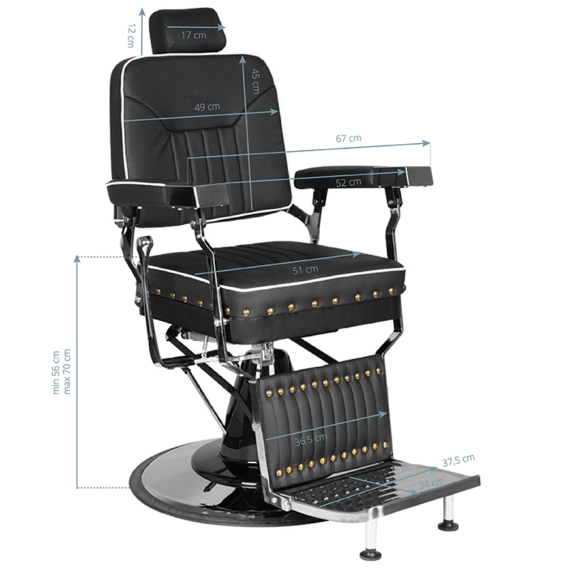 Nieuw in ons aanbod – De barberstoel Filippo. Dit is een moderne, perfect afgewerkte, voordelige barberstoel. De stoel geeft de klant van de salon het maximale gevoel van comfort tijdens de uitgevoerde behandelingen. De stoel heeft een verstelbare rugleuning. Ondanks de kleine afmetingen is het mogelijk om de klant in een handige, liggende positie te plaatsen. De comfortabele zitting is bekleed met hoogwaardig eco-leer. Een brede basis garandeert de stabiliteit van het meubel tijdens gebruik. Een bijkomend voordeel is de gemakkelijke aanpassing van de hoofdsteun. Een meubel in zwarte kleur.