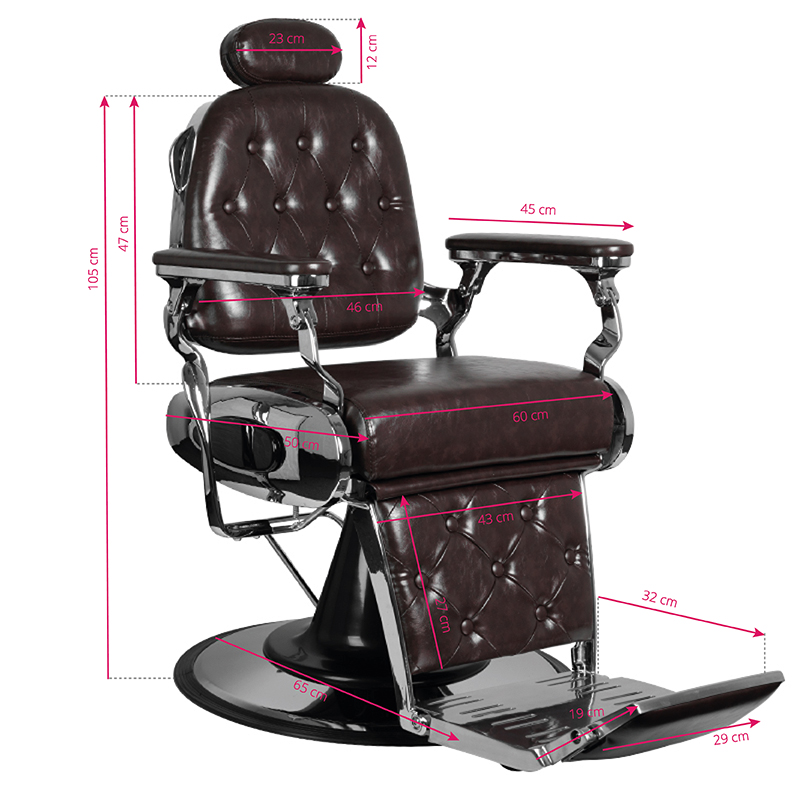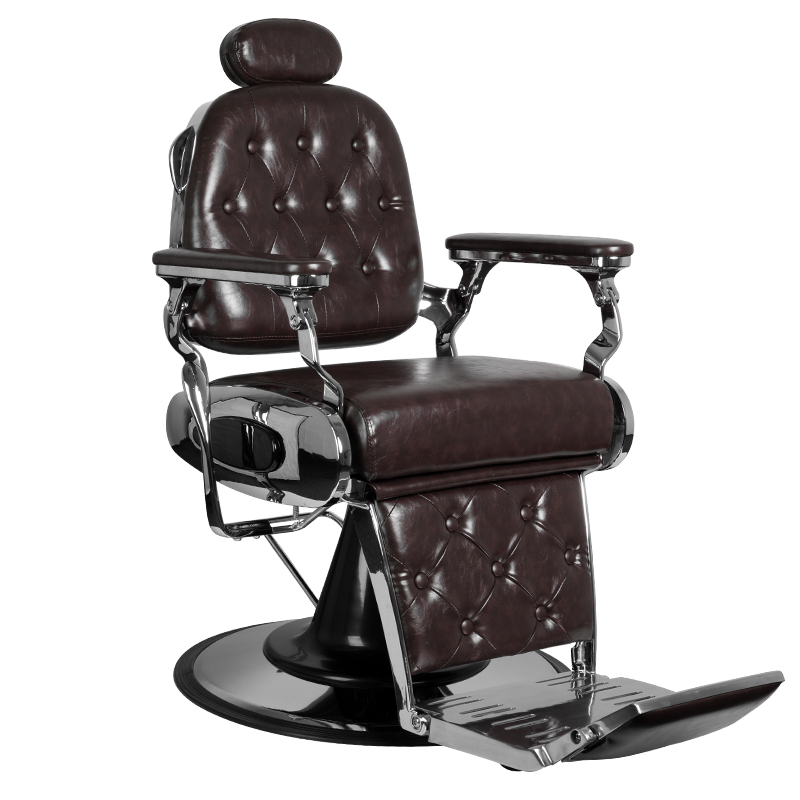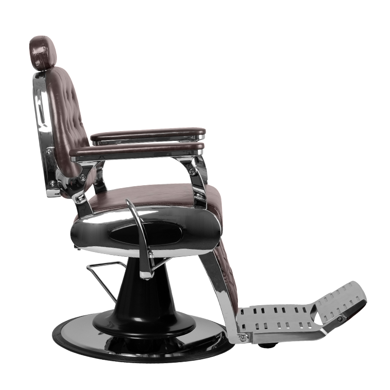 Nieuw in ons aanbod – De barberstoel Francesco. Dit is een modern, perfect afgewerkt meubel met motordetails. De stoel geeft de klant van de salon het maximale gevoel van comfort tijdens de uitgevoerde behandelingen. De barberstoel heeft een verstelbare rugleuning en een verstelbare voetensteun. Ondanks de kleine afmetingen is het mogelijk om de cliënt in een handige, liggende positie te plaatsen. De comfortabele zitting is bekleed met hoogwaardig eco-leer. Een brede, chromen voet garandeert de stabiliteit van het meubel tijdens het gebruik. Een bijkomend voordeel is de gemakkelijke verstelling van de hoofdsteun. Een meubel in een donker bruine kleur.