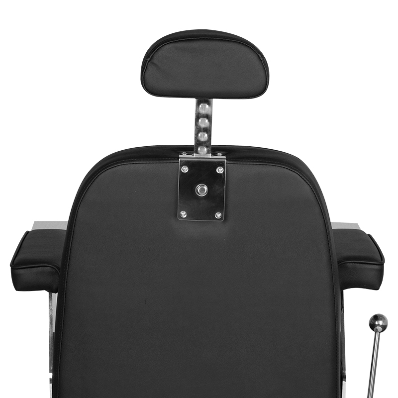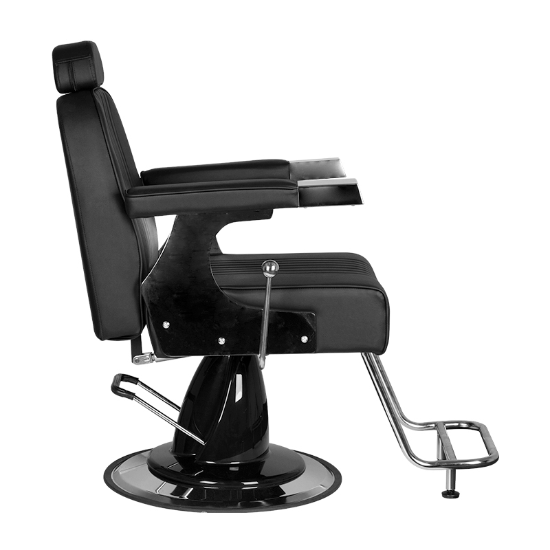 Nieuw in ons aanbod – De Barberstoel Gino. Dit is een modern, perfect afgewerkte barberstoel die de klant van de barbersalon het maximale gevoel van comfort geeft tijdens de uitgevoerde behandelingen. Afgezien van de up-down verstelling heeft de stoel een verstelbare rugleuning en een voetensteun. Ondanks zijn kleine afmetingen is het mogelijk om de klant in een gemakkelijke, liggende positie te plaatsen. De comfortabele zitting is bekleed met hoogwaardig eco-leer. Een brede, chromen voet garandeert de stabiliteit van het meubel tijdens gebruik. Een bijkomend voordeel is de gemakkelijke aanpassing van de hoofdsteun. Een meubel in zwarte kleur.