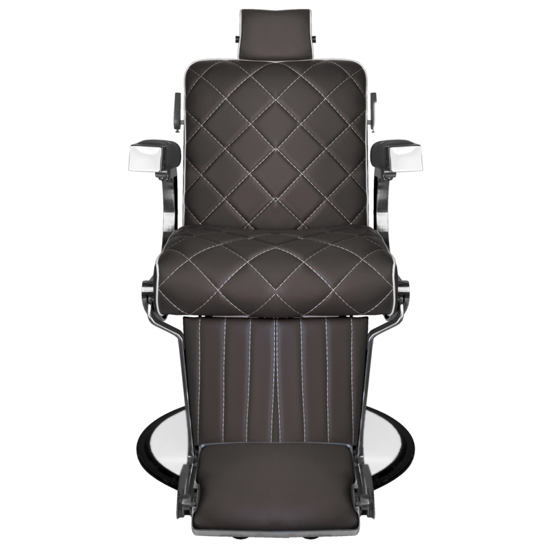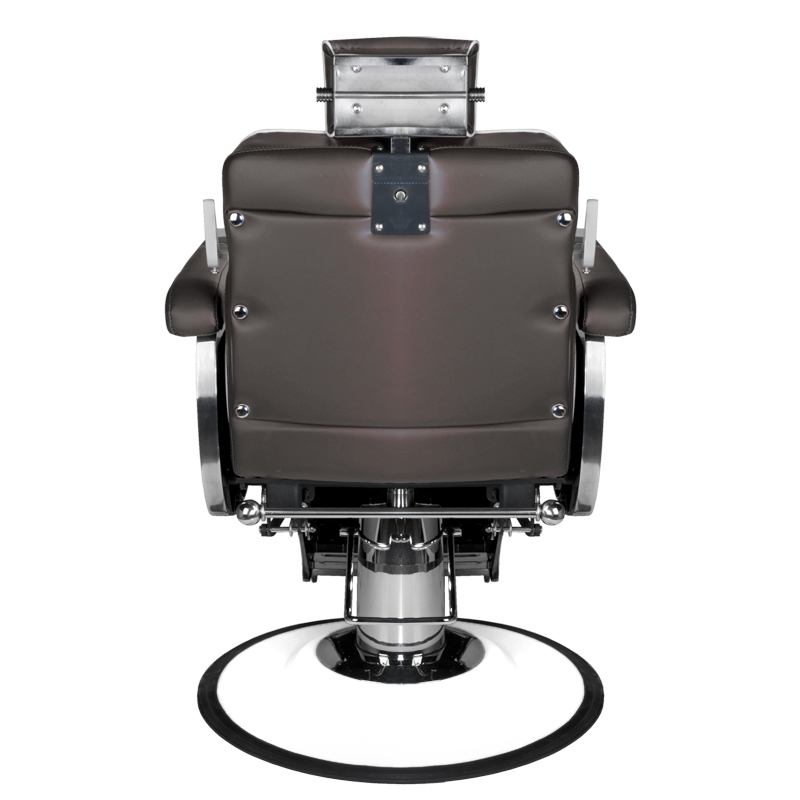 Nieuw in ons aanbod – Barberstoel Giuseppe. Dit is een modern, perfect afgewerkt meubel dat de klant het maximale gevoel van comfort geeft tijdens de uitgevoerde behandelingen. Afgezien van de up-down verstelling, heeft de barberstoel een liggende rugleuning en een verstelbare voetensteun. Ondanks de kleine afmetingen is het mogelijk om de klant in een gemakkelijke, liggende positie te plaatsen. De comfortabele zitting is bekleed met hoogwaardig eco-leer. Een brede, chromen voet garandeert de stabiliteit van de meubelen tijdens gebruik. Een bijkomend voordeel is de gemakkelijke verstelling van de hoofdsteun. Een meubel in een bruine kleur.