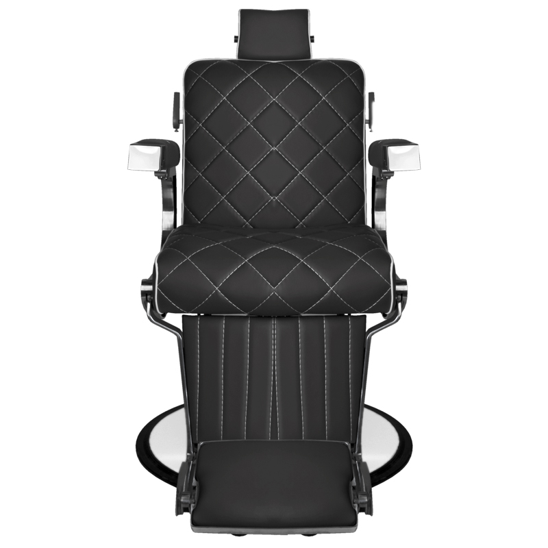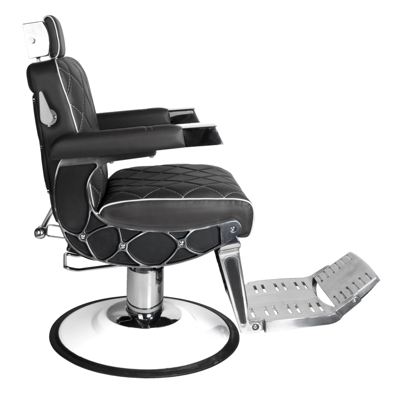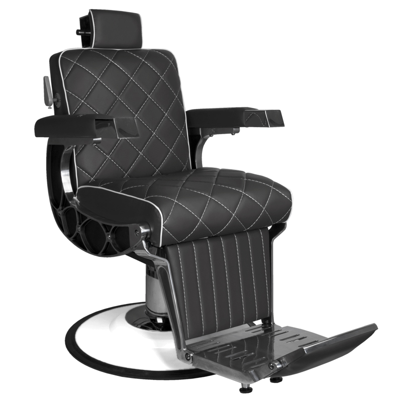 Nieuw in ons aanbod – Barberstoel Giuseppe. Dit is een modern, perfect afgewerkt meubel dat de klant het maximale gevoel van comfort geeft tijdens de uitgevoerde behandelingen. Afgezien van de up-down verstelling, heeft de barberstoel een liggende rugleuning en een verstelbare voetensteun. Ondanks de kleine afmetingen is het mogelijk om de cliënt in een gemakkelijke, liggende positie te plaatsen. De comfortabele zitting is bekleed met hoogwaardig eco-leer. Een brede, chromen voet garandeert de stabiliteit van de stoel tijdens gebruik. Een bijkomend voordeel is de gemakkelijke verstelling van de hoofdsteun. Een meubel in zwarte kleur.