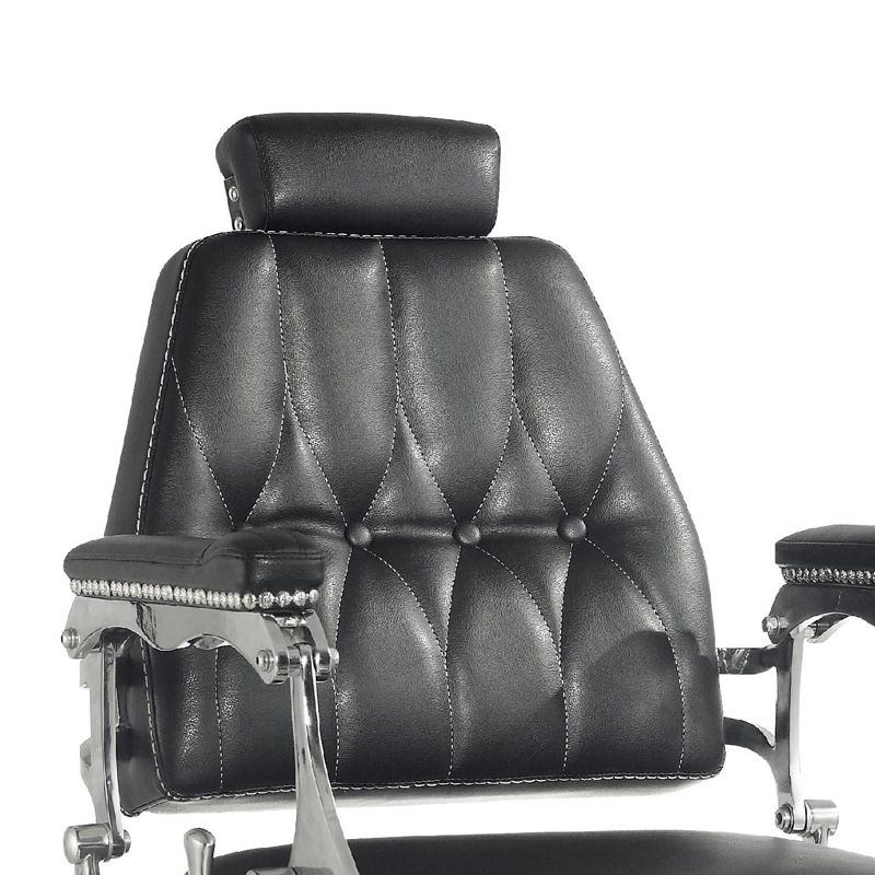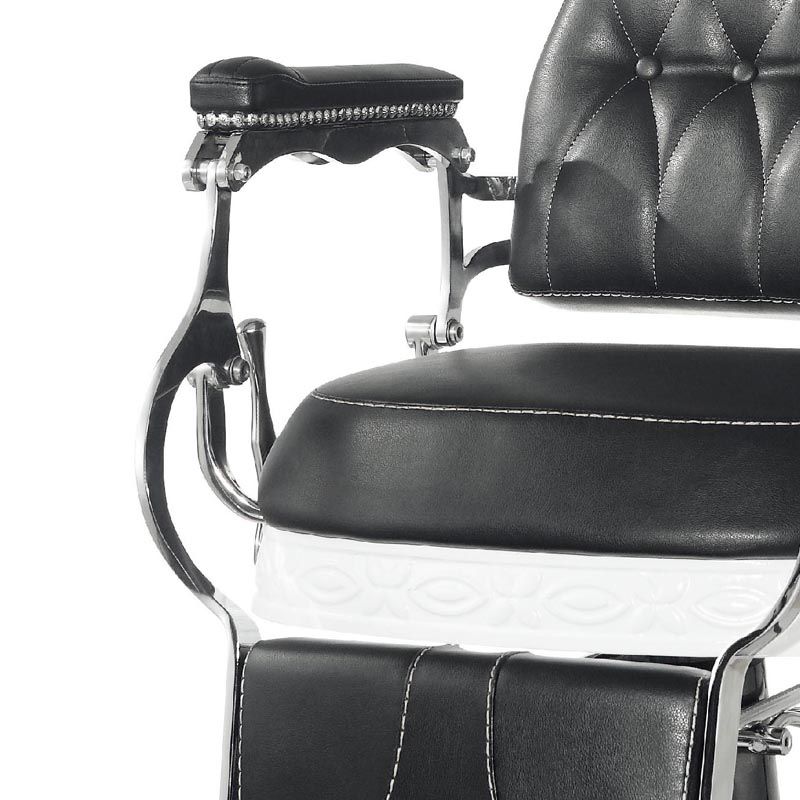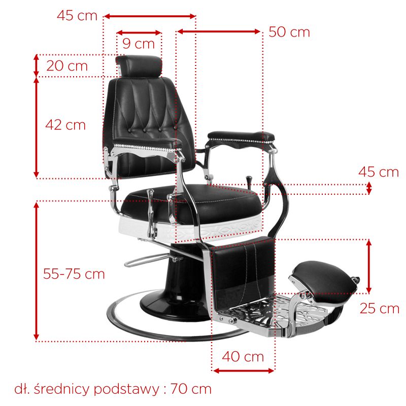 Als uw salon baardverzorging biedt, kunnen wij het perfecte meubelstuk voor uw kapperszaak aanbieden. Een comfortabele fauteuil met een breed scala aan aanpassingen zorgt voor maximaal comfort voor zowel de persoon die de behandeling uitvoert als de salonklant. We kunnen niet alleen de hoogte van de fauteuil instellen. We kunnen de helling van de rugleuning gemakkelijk aanpassen. En ook de voetsteun en de lengte van de bedsteun. Barberstoel Lord is niet alleen comfortabel en eenvoudig te verstellen, maar ook een uiterst stijlvol ontwerp. Het past perfect in het interieur dat in de oude stijl is ingericht. Perfect afgewerkt. Zelfs de kleinste details worden met grote precisie gemaakt. Mooie bekleding met originele textuur. Hoogwaardig eco-leer, slijtvast en gemakkelijk om voor te zorgen. Een zwaar gietijzeren onderstel geeft het meubel een perfecte stabiliteit, zelfs onder zware belasting.