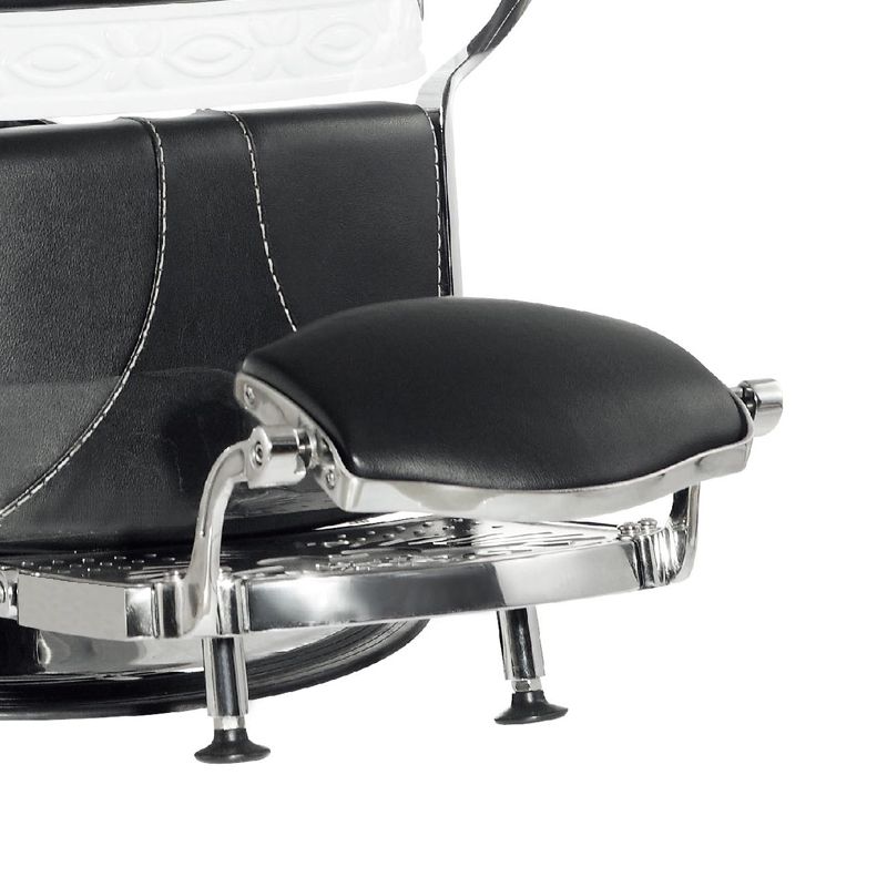 Gabbiano Barberstoel Lord Zwart Als uw salon baardverzorging biedt, kunnen wij het perfecte meubelstuk voor uw kapperszaak aanbieden. Een comfortabele fauteuil met een breed scala aan aanpassingen zorgt voor maximaal comfort voor zowel de persoon die de behandeling uitvoert als de salonklant. We kunnen niet alleen de hoogte van de fauteuil instellen. We kunnen de helling van de rugleuning gemakkelijk aanpassen. En ook de voetsteun en de lengte van de bedsteun. Barberstoel Lord is niet alleen comfortabel en eenvoudig te verstellen, maar ook een uiterst stijlvol ontwerp. Het past perfect in het interieur dat in de oude stijl is ingericht. Perfect afgewerkt. Zelfs de kleinste details worden met grote precisie gemaakt. Mooie bekleding met originele textuur. Hoogwaardig eco-leer, slijtvast en gemakkelijk om voor te zorgen. Een zwaar gietijzeren onderstel geeft het meubel een perfecte stabiliteit, zelfs onder zware belasting.