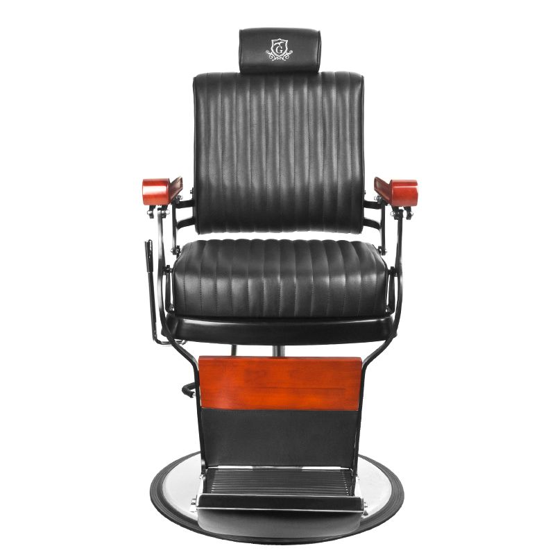 Gabbiano Barberstoel Master Zwart Als uw salon baardverzorging biedt, kunnen wij het perfecte meubelstuk voor uw barbershop aanbieden. Barberstoel Master. Een comfortabele fauteuil met een breed scala aan aanpassingen zorgt voor maximaal comfort voor zowel de persoon die de behandeling uitvoert als de klant. We kunnen niet alleen de hoogte van de fauteuil instellen. We kunnen de helling van de rugleuning gemakkelijk aanpassen. En ook de voetsteun en de lengte van de bedsteun. De hoofdfauteuil is niet alleen comfortabel en gemakkelijk te hanteren, maar ook een uiterst stijlvolle design. De stoel past perfect in het interieur dat in de oude stijl is ingericht. Perfect afgewerkt. Zelfs de kleinste details worden met grote precisie gemaakt. Prachtige bekleding met originele textuur. Hoogwaardig eco-leer, slijtvast en gemakkelijk te onderhouden. Een zware gietijzeren voet geeft het meubel een perfecte stabiliteit, zelfs onder zware belasting.