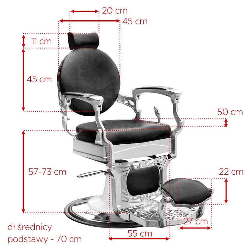 Als uw salon baardverzorging biedt, kunnen wij het perfecte meubel voor uw kapperszaak aanbieden. De barberstoel President. Een comfortabele fauteuil met een breed scala aan aanpassingen zorgt voor maximaal comfort voor zowel de persoon die de behandeling uitvoert als de klant. We kunnen niet alleen de hoogte van de fauteuil instellen. We kunnen ook de helling van de rugleuning gemakkelijk aanpassen. En zelfs de voetsteun en de lengte van de bedsteun. De Barberstoel President beschikt niet alleen over comfort en gemak, maar ook een uiterst stijlvol ontwerp. Deze barberstoel past perfect in een interieur dat old-school is ingericht. Perfect afgewerkt. Zelfs de kleinste details worden met grote precisie gemaakt. Mooie bekleding met originele textuur. Hoogwaardig eco-leer, slijtvast en gemakkelijk om voor te zorgen. Een zwaar gietijzeren onderstel geeft het meubel een perfecte stabiliteit, zelfs onder zware belasting.