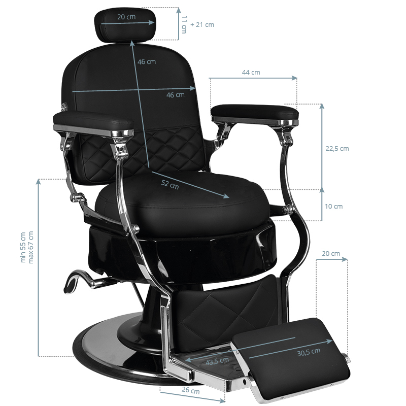 Als jouw salon baardverzorging biedt, kunnen wij de perfecte barberstoel voor je barbersalon aanbieden. De barberstoel Vito. Een comfortabele fauteuil met een breed scala aan aanpassingen zorgt voor maximaal comfort voor zowel de persoon die de behandeling uitvoert als de salonklant. Niet alleen is de hoogte van de fauteuil in te stellen, ook de helling van de rugleuning is gemakkelijk aan te passen en ook de voetsteun en de lengte van de bedsteun. De barberstoel Vito is niet alleen comfortabel en eenvoudig te verstellen, maar ook nog eens uiterst stijlvol design. Het past perfect in het interieur dat in de oude stijl is ingericht. Perfect afgewerkt. Zelfs de kleinste details worden met grote precisie gemaakt. Prachtige bekleding met originele textuur. Hoogwaardig eco-leer, slijtvast en gemakkelijk te onderhouden. Een zware gietijzeren voet geeft het meubel een perfecte stabiliteit, zelfs onder zware belasting.