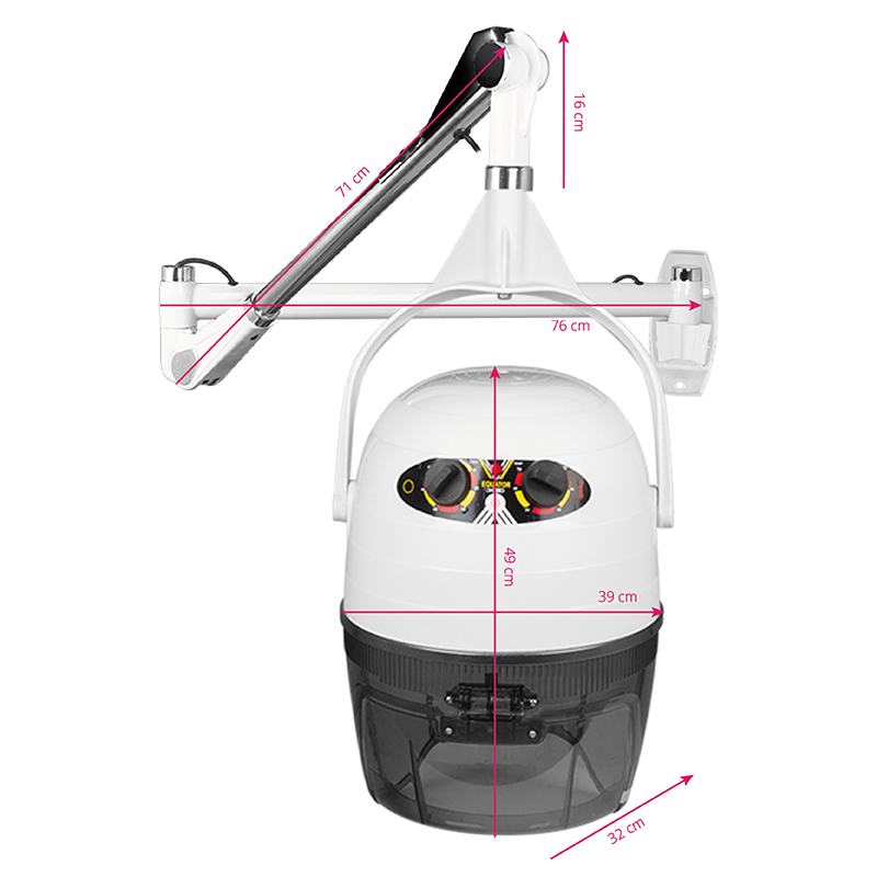 Gabbiano 1600 helm Droogkap roestvrijstalen staalverwarmingselementen Temperatuurregeling tot 75 graden C tijdregeling van 0-60 minuten Power 950W helmhelmes zijn een van de meest karakteristieke kappersapparatuur – we kunnen het vinden in praktisch elke wasunit. Dergelijke droogkaps droog niet alleen nat haar, maar zijn ook nuttig tijdens verschillende HAAR -behandelingen. Tegenwoordig drogen Haar Droogkaps die in wasunits worden gebruikt niet alleen het haar, maar ook om ervoor. Bovenal zijn ze vaak uitgeruste met ionisatie -opties – dus, na het gebruik van een dergelijke helm droogkap, is onze Haar volledig verlicht van de kosten van Elektische. Als gevolg hiervan, direct na het drogen, zijn ze elastischer en regelen ze beter. Je kunt ook onmiddellijk merken dat ze glanzender worden – dit komt omdat de Haarschutjes tijdens ionisatie sluiten, als gevolg daarvan worden ze soepeler, glanzender en pakken ze helemaal niet statisch op