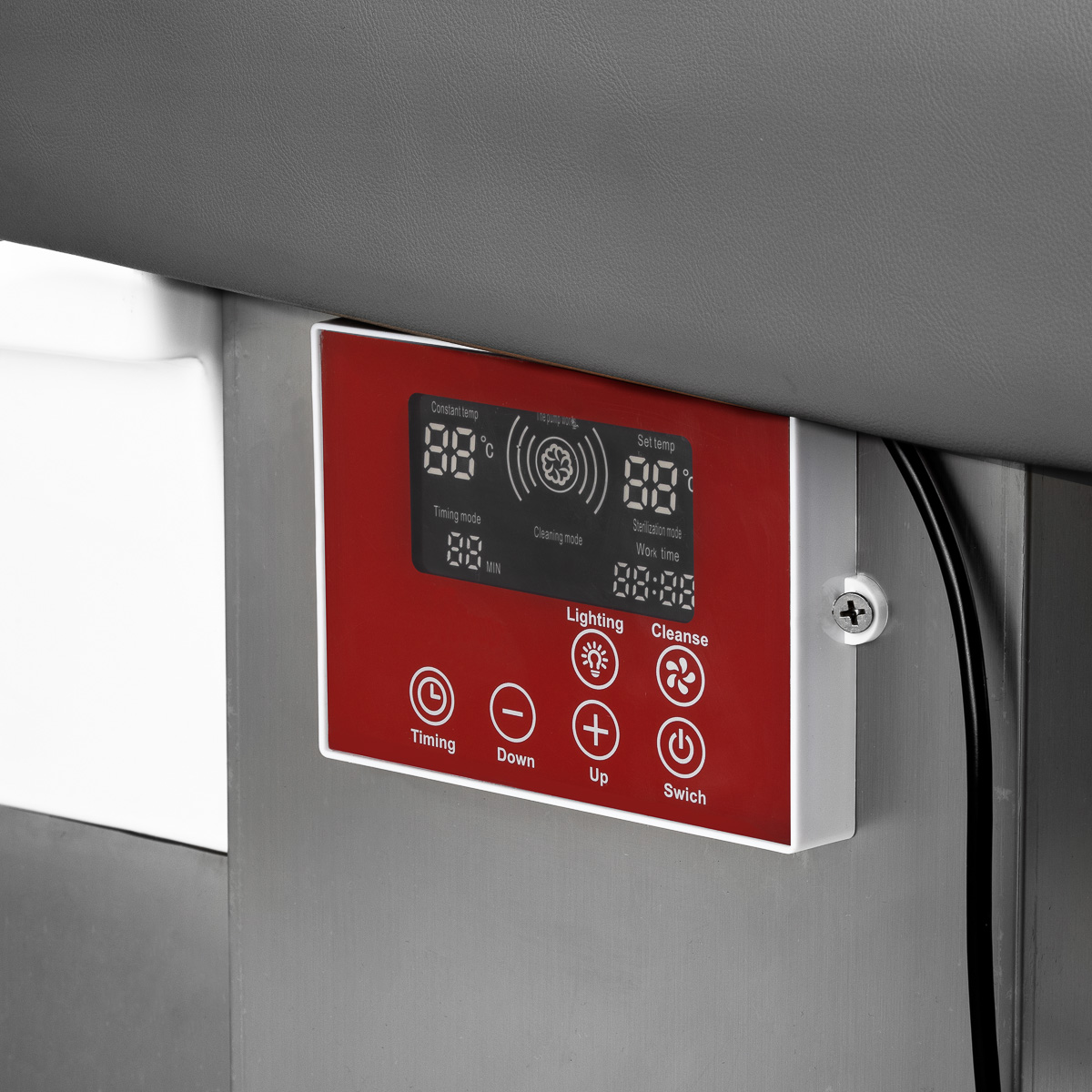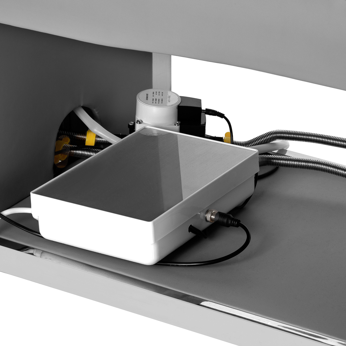 Het intuïtieve touchscreen biedt volledige controle over de functies van de wasunit. Hiermee kunt u de wastijd en de watertemperatuur aanpassen en de huidige waarden controleren. Dankzij het ingebouwde display kunt u op elk moment zien hoe lang het apparaat al in gebruik is. Via het paneel kunt u ook de lichttherapiefunctie activeren, oftewel de verlichting van de waskom, waardoor een ontspannen en luxe sfeer ontstaat. Bovendien is het stoomtherapieapparaat voorzien van een afstandsbediening, waardoor bediening op afstand gemakkelijk is.