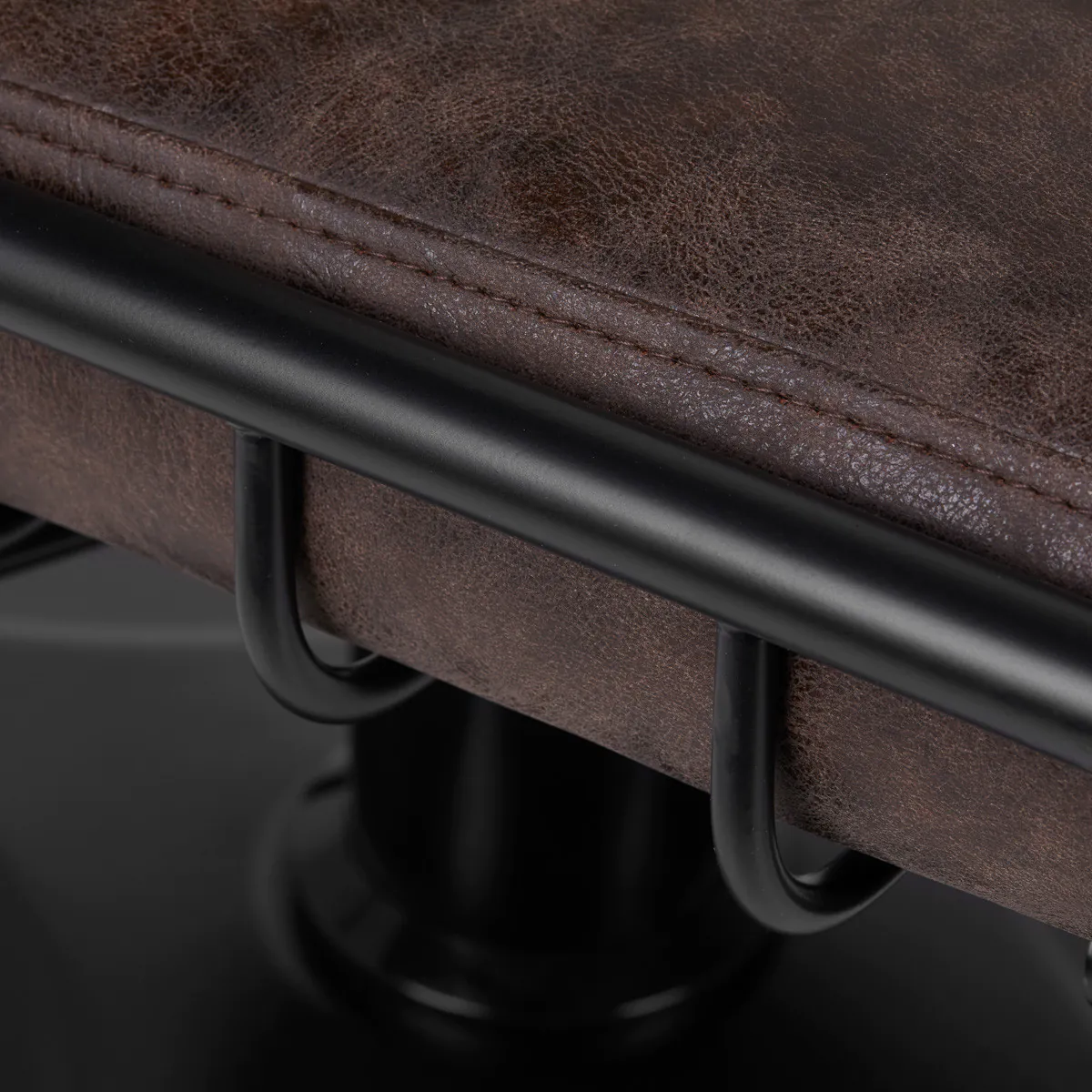 Meubelstuk in loftstijl is gevuld met duurzaam, vervormingsbestendig schuim en de bekleding is gemaakt van aangenaam aanvoelend synthetisch leer in bruintinten. De gebruikte materialen zorgen voor comfortabel gebruik van het meubilair gedurende lange tijd en maken de apparatuur bestand tegen vocht, duurzaam en gemakkelijk schoon te maken. Metalen elementen in zwarttinten geven het een uitdrukking van rauwe elegantie. De moderne Gabbiano Katania Loft kappersstoel onderscheidt zich door een minimalistisch design, wat hem een uniek karakter geeft en waardoor de stoel in veel kapsalons prachtig tot zijn recht komt.