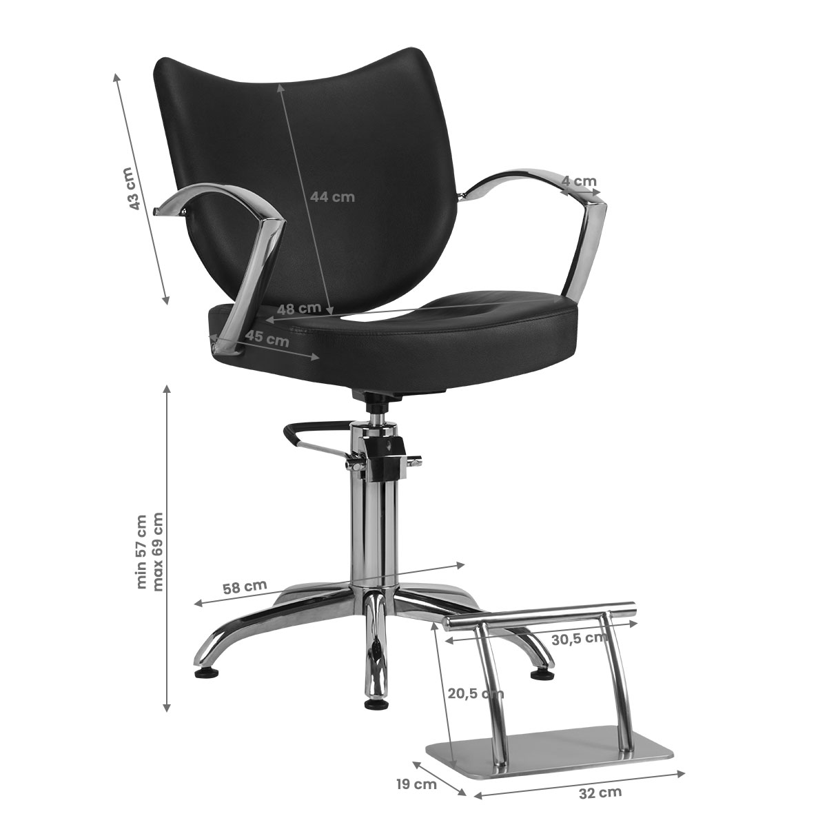 Een moderne kappersstoel ontmoette een uniek ontwerp. Zeer comfortabel, ideaal geschikt voor moderne salons. . Speciaal gevormd om de cliënt een comfortabele positie tijdens de behandeling te bieden. Verstelbaar in het verticale vlak. met voetsteun inbegrepen. Zeer stabiel en solide. Cover gemaakt van hoogwaardige eco-leer. Zwart kleur.