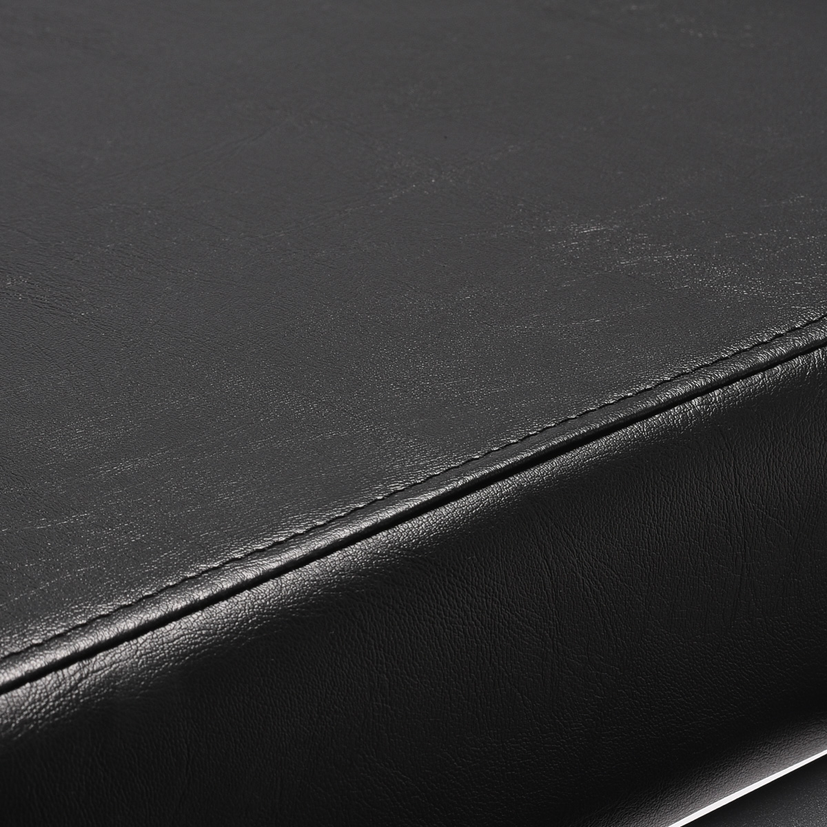De vulling met duurzaam, vormvast schuim en de bekleding van aangenaam aanvoelend kunstleer zorgen voor duurzaamheid en langdurig gebruikscomfort. Het maakt het meubel bovendien vochtbestendig, duurzaam en gemakkelijk schoon te maken. De zwarte bekleding geeft het een uniek karakter. De uitrusting onderscheidt zich door een modern design, waardoor de stoel in veel professionele salons prachtig tot zijn recht komt.