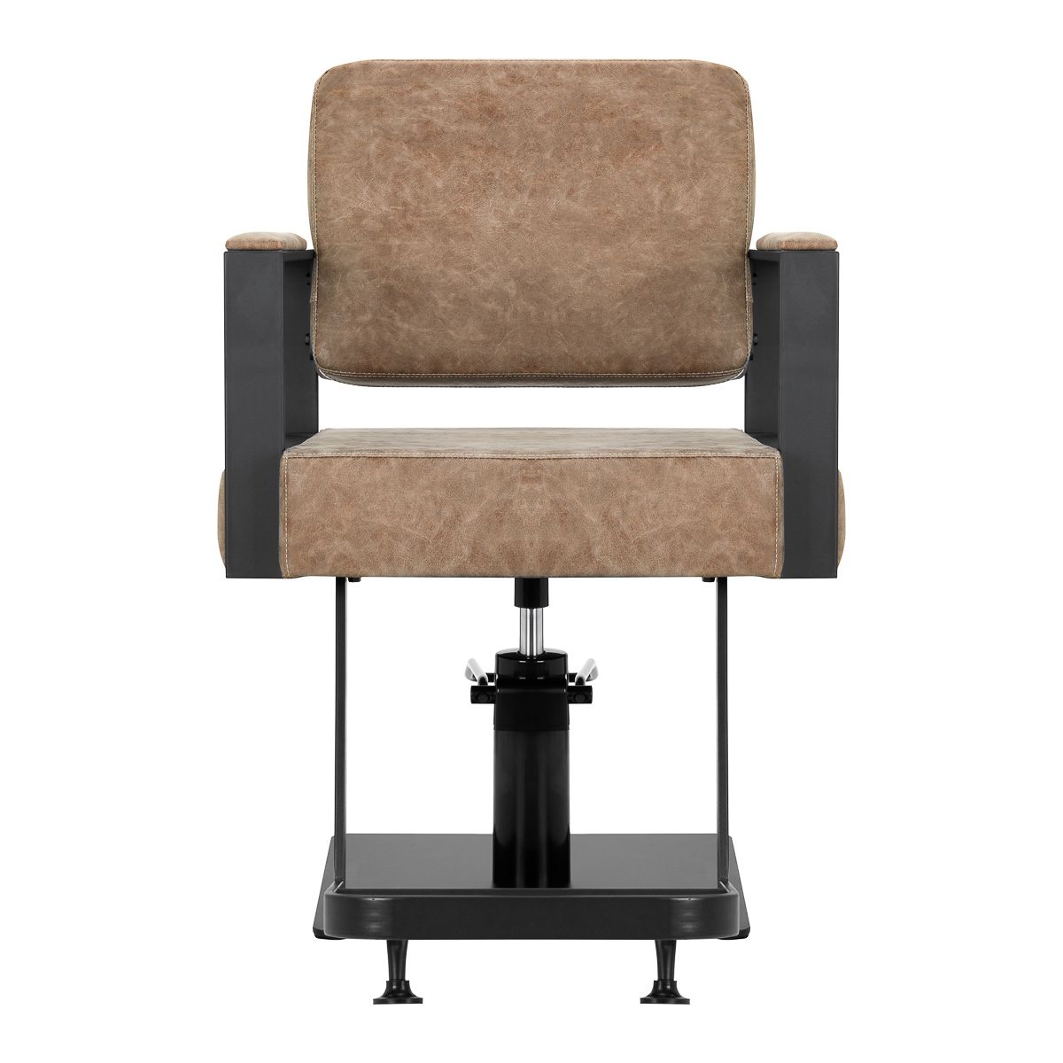 Het uitrusten van de stoel met een volledig rotatiemechanisme maakt het werk van de kapper effectiever en comfortabel. De stevige, platte, vierkante basis garandeert stabiliteit tijdens gebruik. Het mat afgewerkte, gladde oppervlak geeft het element een elegante uitstraling en is gemakkelijk schoon te houden. Een comfortabele zitting met schuimvulling zorgt voor hoog gebruikscomfort, zelfs tijdens vele uren behandelingen. Geometrische, gedeeltelijk gestoffeerde armleuningen zorgen voor de juiste positionering van de schouders van de cliënt – dit betekent dat hij zijn hoofd niet in zijn schouders steekt of onderuitzakt – waardoor het duidelijk gemakkelijker wordt om nauwkeurige behandelingen uit te voeren, inclusief knipbeurten.< /p>