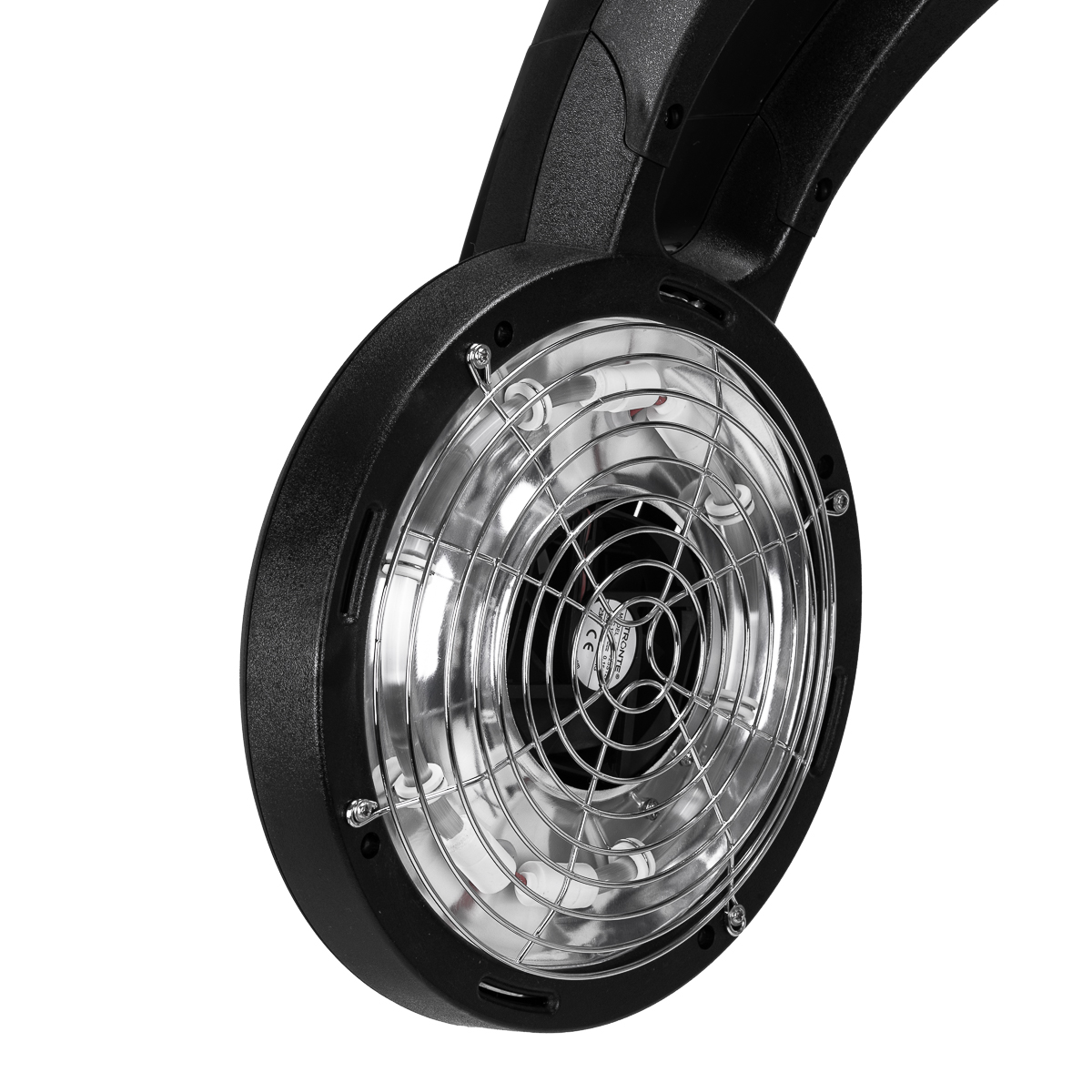 Futuristische behuizing gemaakt van duurzaam plastic in zwarttinten geeft het apparaat een moderne en unieke uitstraling, zodat deze bij de meeste interieurs past. Het is ook duurzaam en gemakkelijk schoon te maken. De stabiliteit wordt verzorgd door een vierarmig onderstel met wielen, wat tevens de mobiliteit garandeert. Verstelbaar in een bereik van 142-162 cm, garandeert het statief comfortabel werken en past het apparaat aan de individuele behoeften aan.