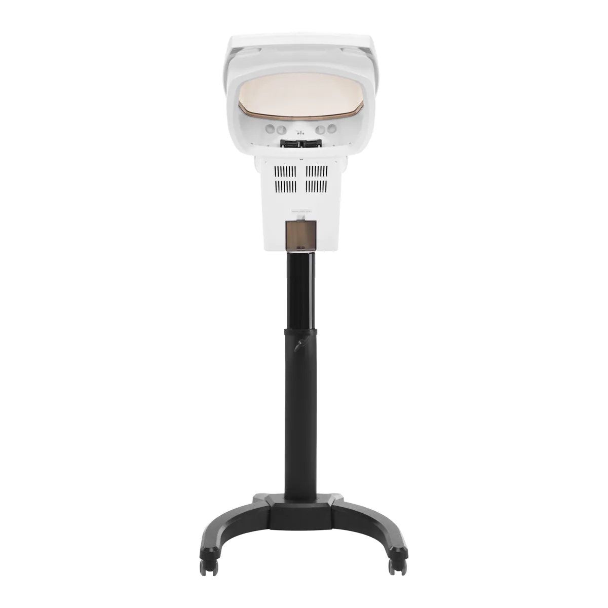 De Gabbiano 408D staande kapper sauna is een innovatief apparaat voor het diep hydrateren, herstellen en voeden van haar. De door het apparaat gegenereerde stoom zorgt ervoor dat de haarschubben uitzetten, wat een nauwkeurigere opname mogelijk maakt van stoffen die in verschillende soorten kapperspreparaten zitten. De actieve ozon ondersteunt de haarreiniging, elimineert de geur van chemische producten die worden gebruikt tijdens kappersbehandelingen en verbetert de bloedcirculatie in de hoofdhuid.
