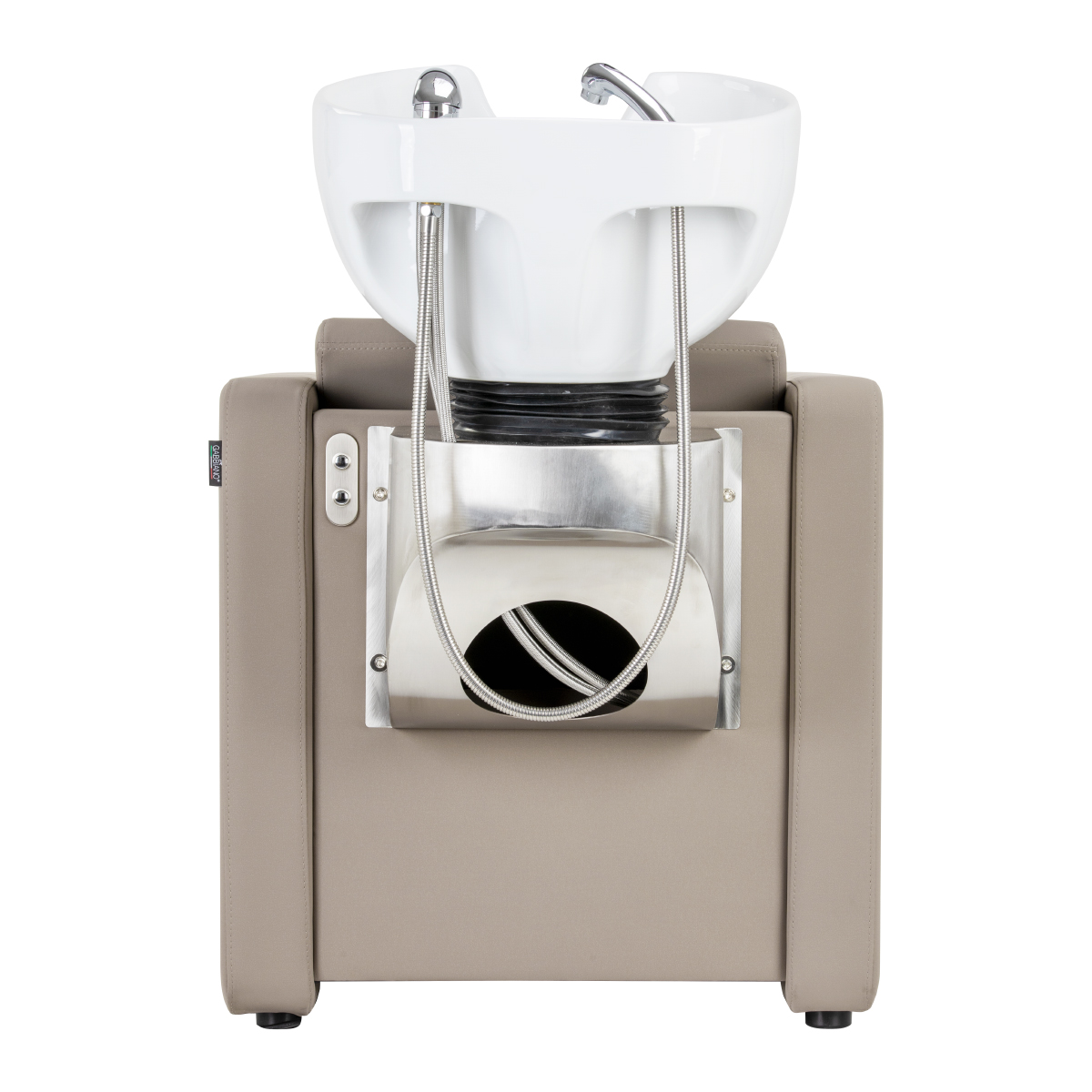 De Gabbiano Sylvia wasstraat is ontworpen met als doel het comfortabel uitvoeren van verzorgings- of kleurbehandelingen en het bieden van een comfortabele houding aan de klant tijdens langere behandelingen. Hij valt op door zijn eenvoud en geometrische vorm, terwijl de loodrechte lijnen van de zitting en armleuningen hem een moderne uitstraling geven. De in een optimale hoek geplaatste rugleuning zorgt voor een uitstekende ondersteuning van de wervelkolom. De passend geprofileerde zitting, gevuld met duurzaam schuim, zorgt voor een hoog gebruikscomfort en de gestoffeerde armleuningen zorgen voor een correcte positionering van de schouders. De kunstlederen bekleding in beige tinten garandeert jarenlange duurzaamheid en eenvoudige reiniging. De elegante, minimalistische uitstraling van de wasplaats geeft het interieur een unieke touch. De set bevat complete fittingen in chroomtinten, waaronder een kraan, douchekop en speciale slangen, voor een complete set gereedschap voor het werk.