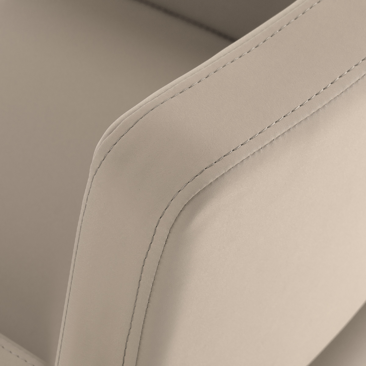 De geprofileerde rugleuning biedt stabiele rugsteun en een comfortabele houding, wat vooral belangrijk is tijdens langere behandelingen en het comfort en de tevredenheid van de klant aanzienlijk verhoogt. De geprofileerde zitting en ergonomische armleuningen ondersteunen de natuurlijke houding van de klant, waardoor de kapper nauwkeuriger kan werken. Het volledige draaimechanisme vergroot de bewegingsvrijheid en manoeuvreerbaarheid, wat resulteert in een soepele en efficiënte service. Een praktische opening tussen de zitting en de rugleuning maakt het mogelijk om snel haar te verwijderen en de werkplek efficiënt te onderhouden.