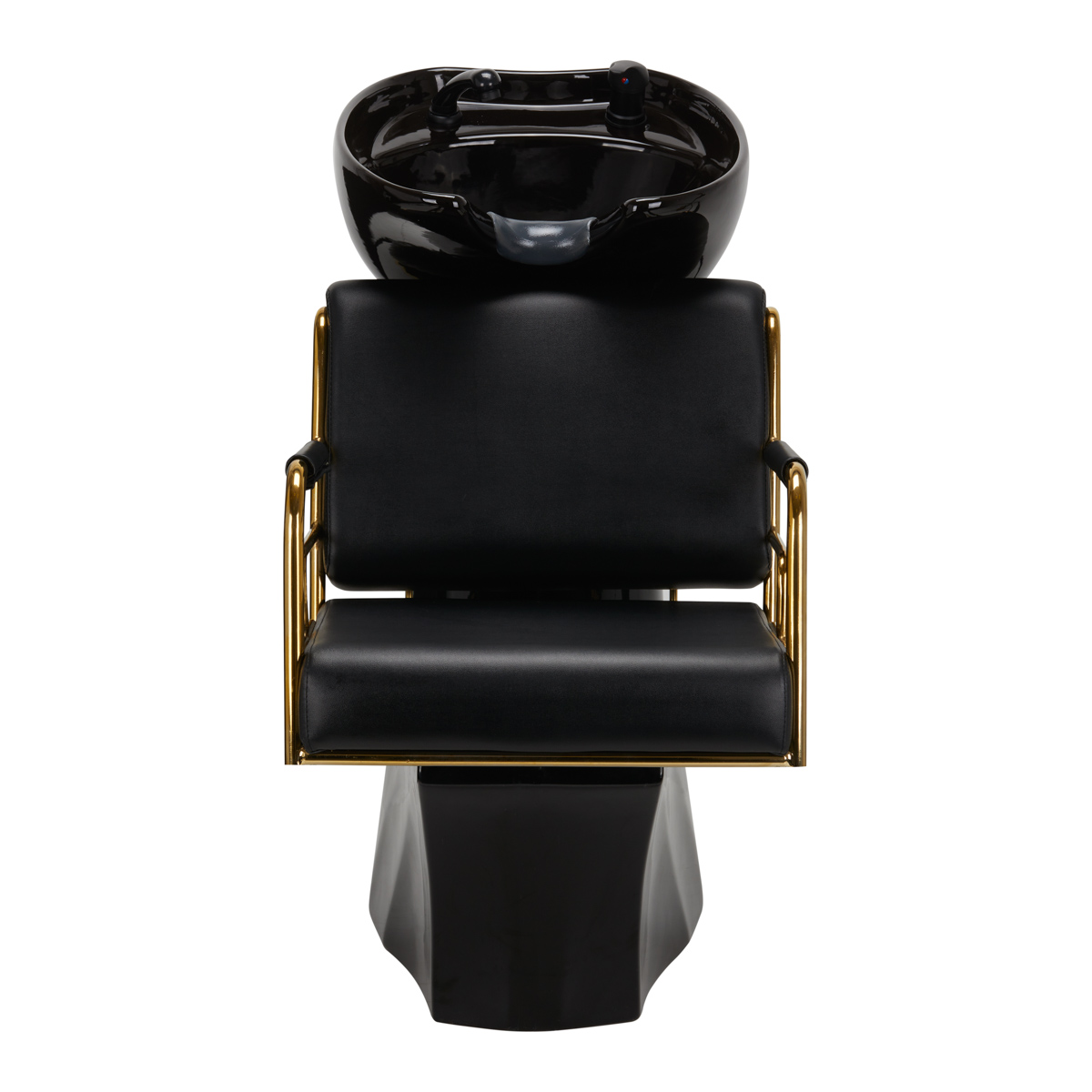De moderne kapper wasunit van Gabbiano combineert functionaliteit met Italiaanse elegantie. De wasstraat is gemaakt van de hoogste kwaliteit materialen en perfect afgewerkt. Wij weten hoe belangrijk het comfort van de cliënt is tijdens behandelingen. Daarom biedt het speciale ontwerp de cliënt een stevige hoofdsteun tijdens het wassen. De zachte en uiterst comfortabele zitting is bekleed met hoogwaardig zwart eco-leer. De wasstraat heeft een witte keramische kom en gouden armleuningen. Het perfecte meubelstuk voor moderne interieurs.