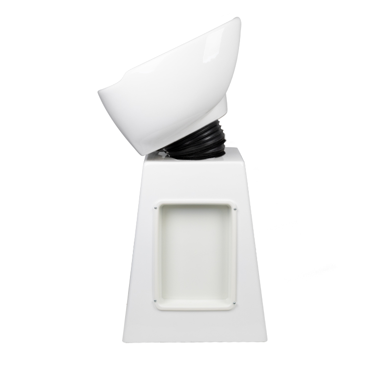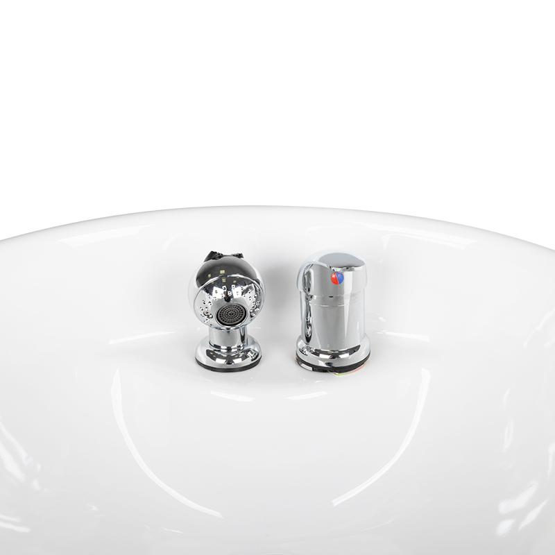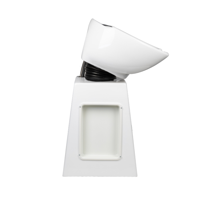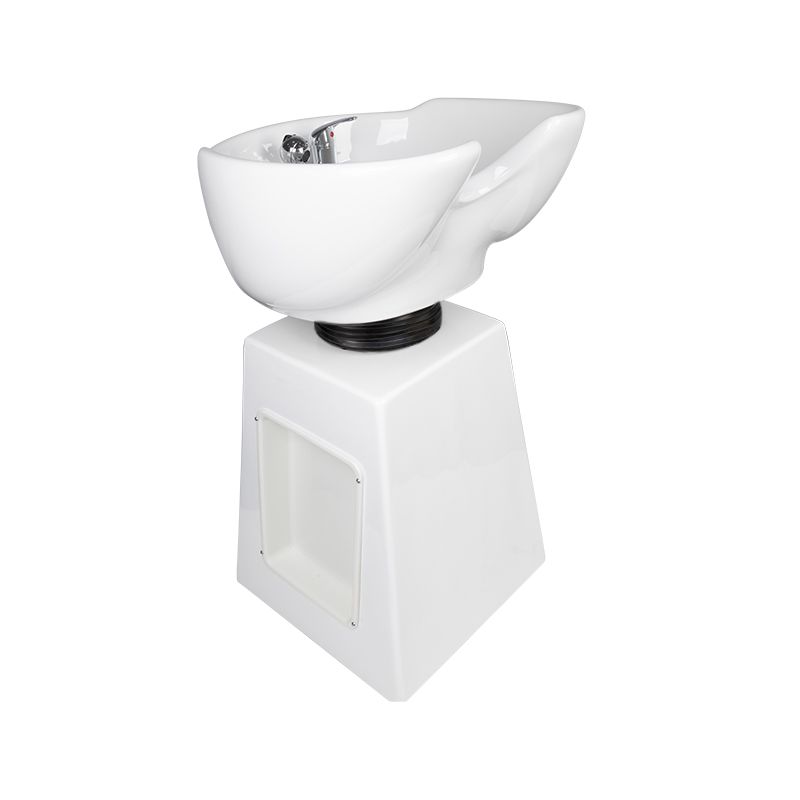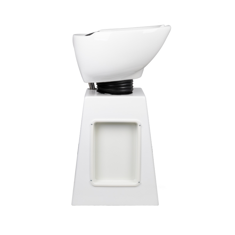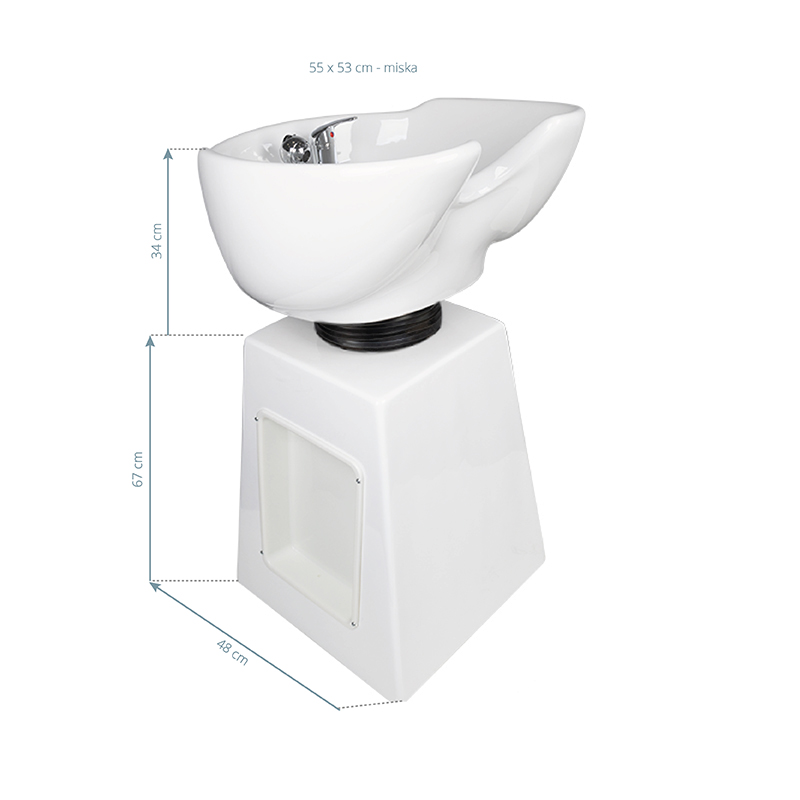 Moderne gabbiano kappers wasunit op zuil. Speciaal aanbevolen voor kleine salons waar vakkundig ruimtebeheer belangrijk is. Een perfect gevormde, keramische kom stelt de klant in staat zijn hoofd comfortabel te positioneren en te genieten van een van de meest aangename behandelingen in een kapsalon. De zuil waarop de schaal wordt geplaatst is gemaakt van acryl en sluit de wasunit aan op de vloer. Eenvoud en elegantie in één. De wasunit staat prachtig in kapsalons.