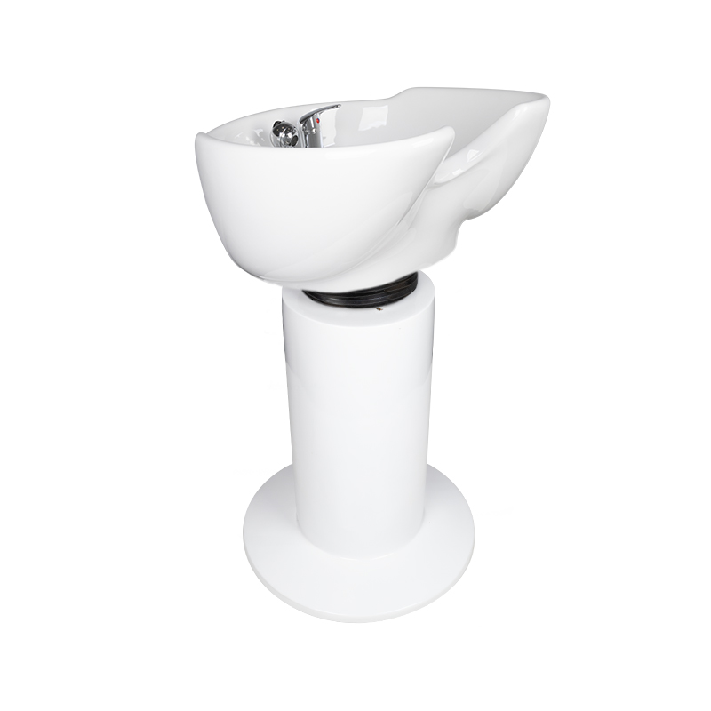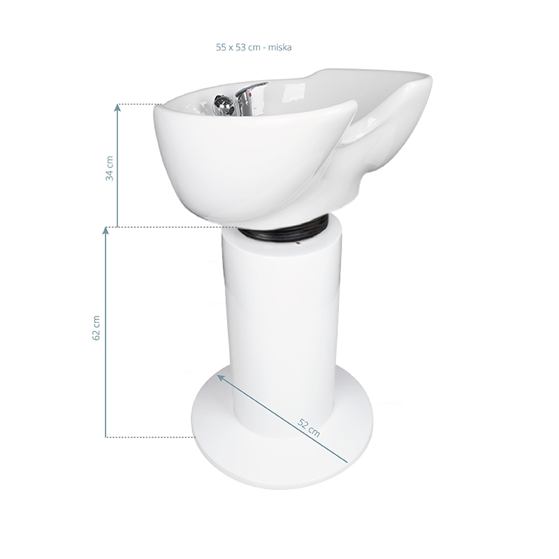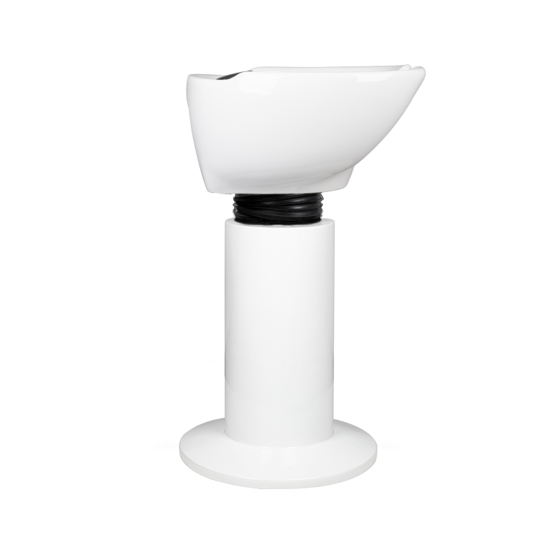 Moderne gabbiano kappers wasunit op zuil. Speciaal aanbevolen voor kleine salons waar vakkundig ruimtebeheer belangrijk is. Een perfect gevormde, keramische kom stelt de klant in staat zijn hoofd comfortabel te positioneren en te genieten van een van de meest aangename behandelingen in een kapsalon. De zuil waarop de schaal wordt geplaatst is gemaakt van acryl en sluit de wasunit aan op de vloer. Eenvoud en elegantie in één. De wasunit staat prachtig in kapsalons.