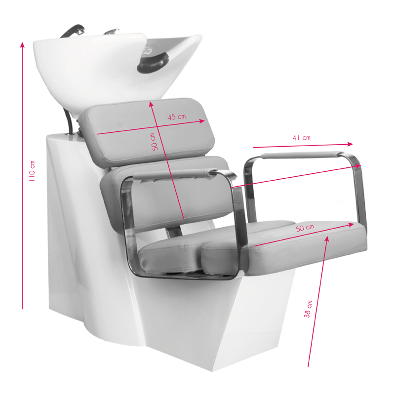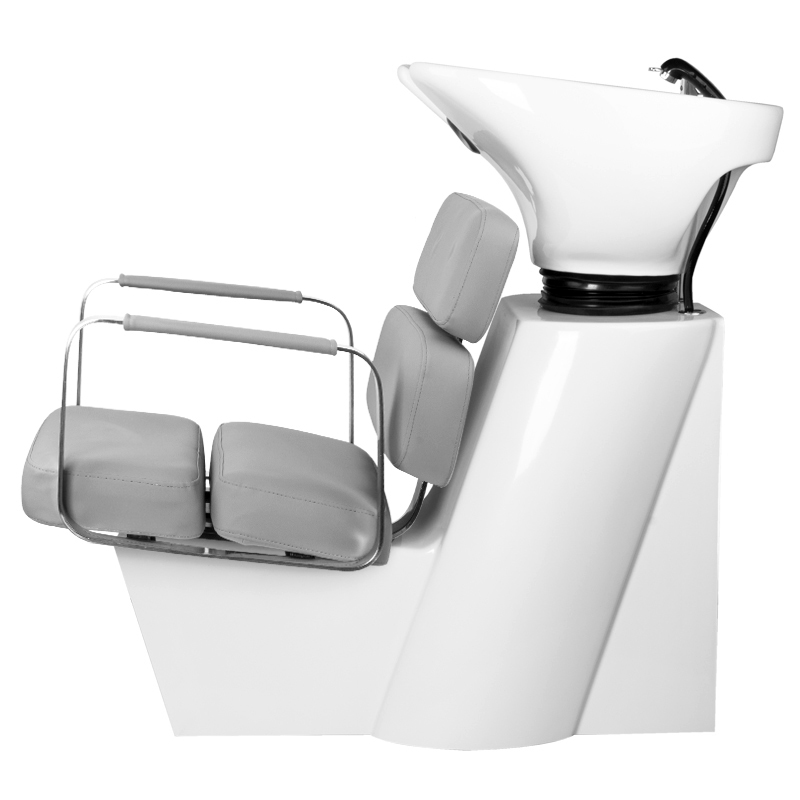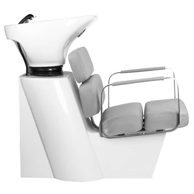 Een moderne gabbiano-kapperswasbeurt is een combinatie van functionaliteit en Italiaanse elegantie. De wasstraat is gemaakt van de hoogste kwaliteit materialen en perfect afgewerkt. wij weten hoe belangrijk het comfort van de cliënt is tijdens behandelingen. Daarom biedt het speciale ontwerp de cliënt een stevige hoofdsteun tijdens het wassen. de zachte en uiterst comfortabele zitting is bekleed met hoogwaardig grijs eco-leer. De wasstraat heeft een witte keramische waskom en zilveren armleuningen. het perfecte meubelstuk voor moderne interieurs.
