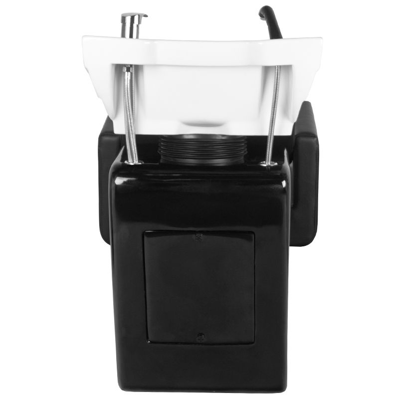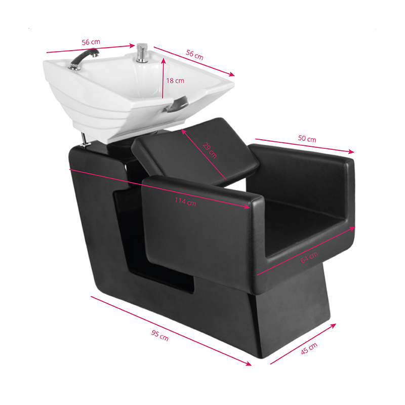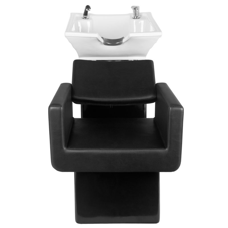 Een moderne kappers wasunit van Gabbiano – een combinatie van functionaliteit met Italiaanse elegantie. De wasunit is gemaakt van de hoogste kwaliteit materialen en perfect afgewerkt. We weten hoe belangrijk het comfort van de klant is tijdens behandelingen, daarom biedt het speciale ontwerp de klant een stevige hoofdsteun tijdens het wassen. De zachte en uiterst comfortabele zitting is bekleed met hoogwaardig zwart eco-leer. De wasunit heeft een witte keramische kom met een zwarte voet. Het perfecte meubel voor een modern interieur.