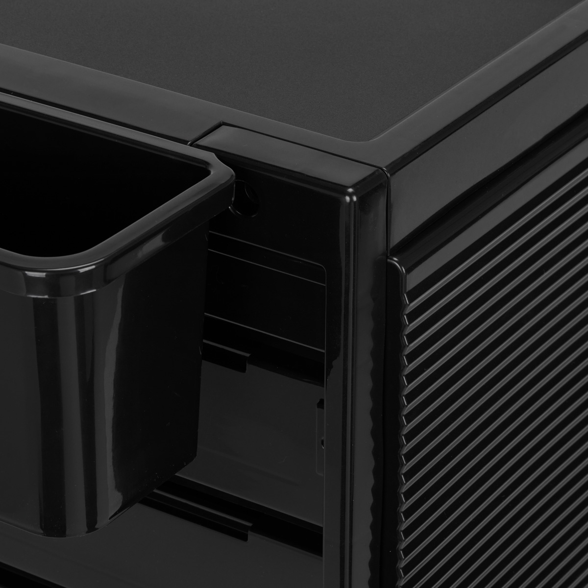 Bovenop de helper is een ondiepe uitsparing, ideaal voor het opbergen van gereedschap terwijl u werkt. Het zal ook een geweldige plek zijn om de meest noodzakelijke accessoires op te bergen voor de duur van de dienst – zoals in het geval van kleuren – kommen, verf of penselen. Het oppervlak van de uitsparing is – zoals alle trays in de set – bedekt met een matte, ruwe, antisliplaag, waardoor deze de geplaatste instrumenten dempt en op een bepaalde plaats houdt.
