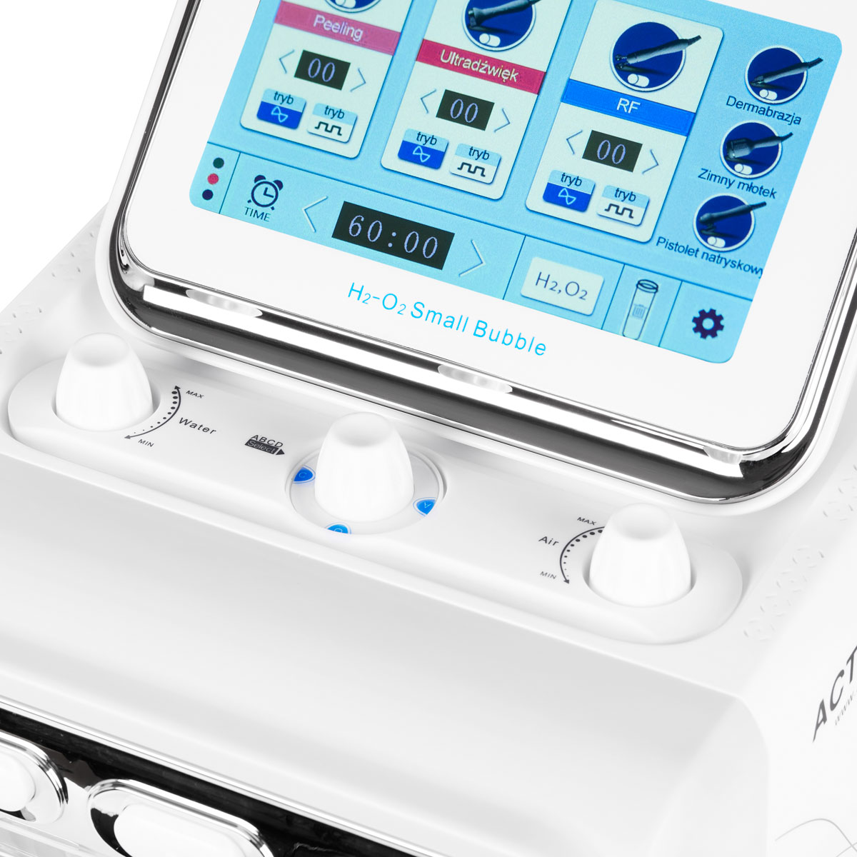Hydrogen Plus is een innovatief apparaat dat zes elementen in één combineert, die elkaar aanvullen, geven een spectaculair effect van de behandeling. Radiogolven – de kop die radiogolven in de huid uitzendt en onderhuids weefsel warm. Collageen wordt verwarmd, wat zijn samentrekking en sterke spanning veroorzaakt, evenals vernieuwing van de structuur. Het effect is de verbetering van het gezicht ovaal, vermindering van rimpels en huidspanning. Echografie – Het is een zeer efficiënte manier om actieve stoffen in cosmetisches in de huid te introduceren. Onder invloed van warmte verwijden bloedvaten, de toevoer van cellen met bloed, zuurstof en voedingsstoffen neemt toe. Hydrobrasion – De nieuwste technologie om dode epidermis te exfoliëren, ontmoette een speciaal ontworpen hoofd. Het effect van de behandeling is glad, diep gehydrateerde en stralende huidkoude kop – het is de taak om geïrriteerde huid te kalmeren, aquapores te sluiten na elektroporatie of actieve ingrediënten in cosmetisches zuurstofspray – met behulp van fysiologische zoutoplossing wordt gebruikt om de huid te reinigen, terwijl het gebruik van de ampoule zal, afhankelijk van de samenstelling, op de huid werken, b.v. Vochtig, zuurstofrijk, regenereren … cavitatiepeeling – het is een manier om dode cellen van het stratum corneum te reinigen. Technische gegevens: Vermogen: 160W Voeding: 230V Ultrasone frequentie: 1MHz Radiofrequentie: 2MHz, Bipolair Zuigvermogen: 650 cmHg Waterstroom: 30L Druk: 90 kpa Breedte 27 cm Hoogte 27 cm Hoogte 27 cm Hoogte 27 cm Hoogte 27 cm Hoogte 27 cm Hoogte 27 cm Hoogte 27 cm Hoogte 27 cm Hoogte 27 cm Hoogte 27 cm Hoogte 27 cm Hoogte 27 cm Hoogte 27 cm Hoogte 27 cm Hoogte 27 cm Hoogte 27 cm Hoogte 27 cm Hoogte 27 cm Hoogte.