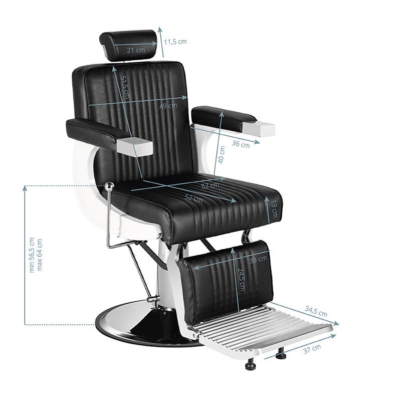 Nieuw in ons aanbod – De Barberstoel Imperium. Het is een modern, perfect afgewerkt meubel dat de klant van de salon het maximale gevoel van comfort geeft tijdens de uitgevoerde behandelingen. Naast de up-down verstelling heeft de stoel een verstelbare rugleuning en een verstelbare voetensteun. Ondanks de kleine afmetingen is het mogelijk om de cliënt in een comfortabele, liggende positie te plaatsen. De comfortabele zitting is bekleed met hoogwaardig eco-leer. Het brede, verchroomde onderstel garandeert de stabiliteit van het meubel tijdens het gebruik. Een bijkomend voordeel is de mogelijkheid om de hoofdsteun eenvoudig te verstellen. Een meubel in zwarte kleur.