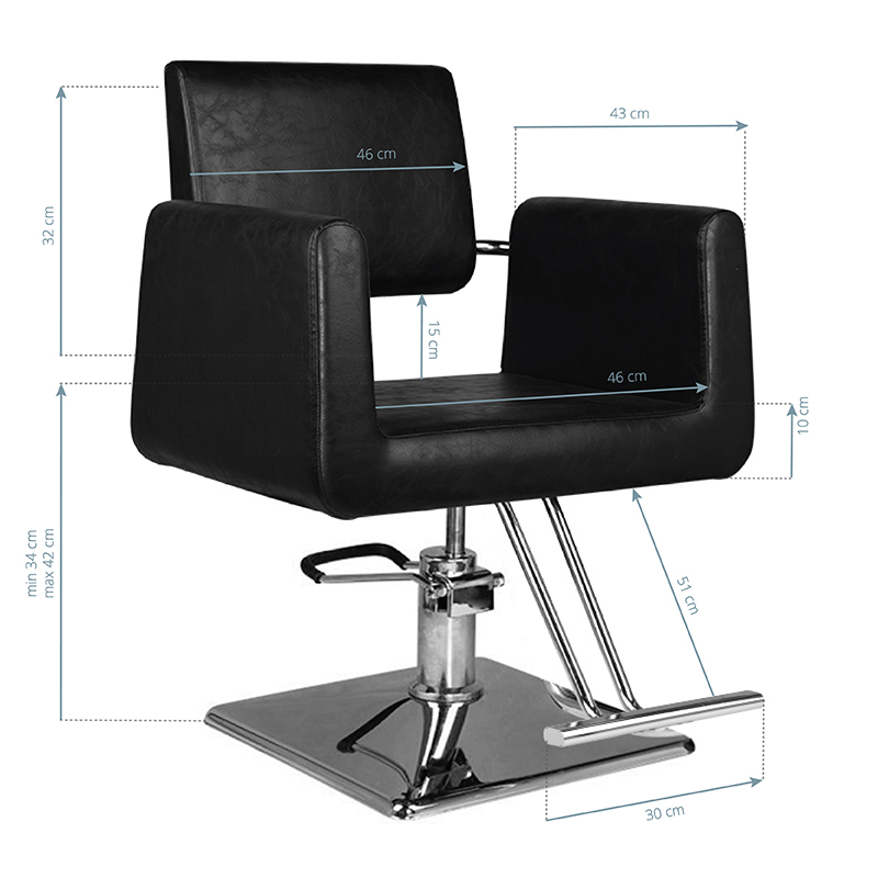 moderne kappersstoel met Hair System. elegant en zeer comfortabel. een solide, verchroomde voet garandeert de stabiliteit van de stoel. bekleding gemaakt van hoogwaardig zwart eco-leer. de stoel is omhoog en omlaag verstelbaar