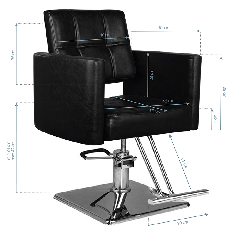 moderne kappersstoel met Hair System. elegant en zeer comfortabel. een solide, verchroomde voet garandeert de stabiliteit van de stoel. bekleding gemaakt van hoogwaardig zwart eco-leer. de stoel is omhoog en omlaag verstelbaar