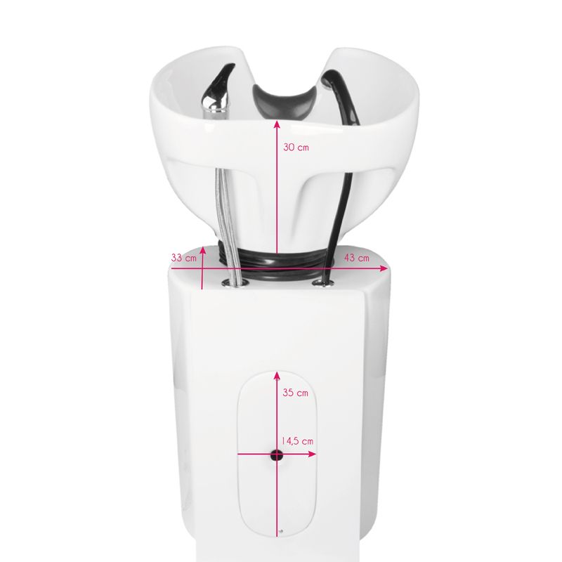 Stijlvolle kappers wasunit. Zeer comfortabel, past perfect in het interieur van elegante woonkamers. Zeer stabiel en solide. Bekleding van de hoogste kwaliteit zwart eco-leer. Basis van de wasunit in wit.