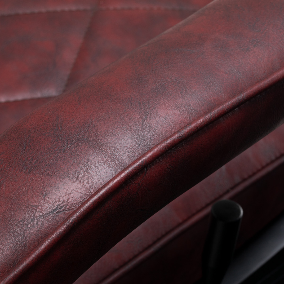 De solide ronde basisconstructie van de behandelstoel zorgt voor stabiliteit en uitstekend gebruikscomfort. De vulling van de zitting, gemaakt van vervormingsbestendig schuim, en de bekleding van zacht aanvoelend synthetisch leer met een matte afwerking zorgen voor een lange levensduur en comfort bij langdurig gebruik. Stijlvolle stiksels op de bekleding voegen karakter toe en doen denken aan autodesign, wat de elegante uitstraling versterkt. Deze eigenschap maakt de behandelstoel ook vochtbestendig, duurzaam en gemakkelijk schoon te maken. De bekleding in bordeauxrode tinten geeft de behandelstoel een uniek karakter en de minimalistische stijl zorgt ervoor dat hij naadloos past bij de inrichting van elke kapperszaak.